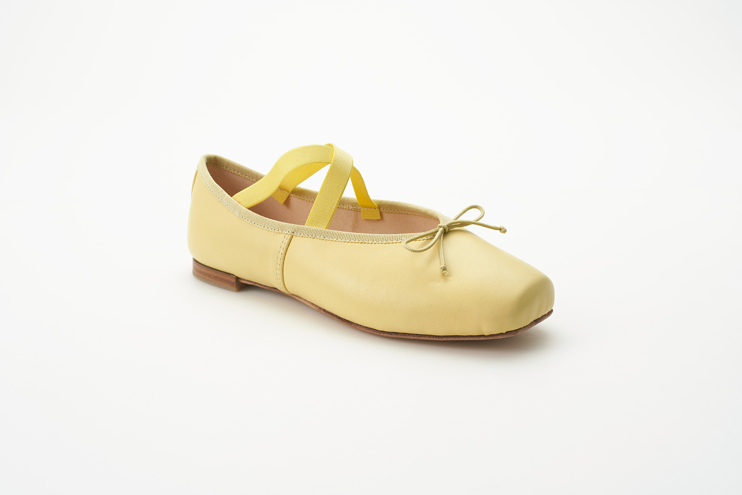 クロスに掛けられたエラスティックはMerlet社で作られているバレエシューズからきています。捨て寸のあるエレガントなスクウェアトゥは足元をスマートに見せます。