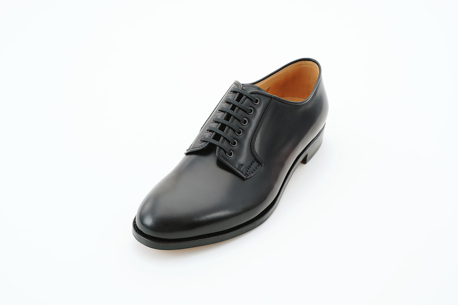 CORDVANは馬臀部スエード面にあるコードバン層に光沢加工をした繊細な革です。革の特質と職人の癖に合わせた型紙のDERBY SHOES。