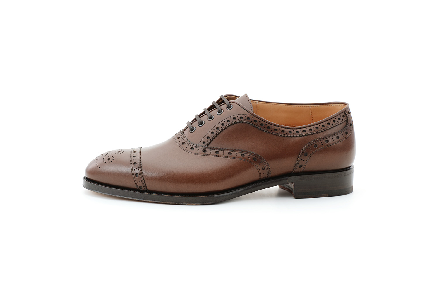 正統スタイルの代表CAP TOE DERBY+オブリークトゥ木型。ダブルソールに大きな目付けとハトメが堅牢に作られたハンドメイドの古靴に見るカントリースタイルです。イタリア靴らしい厚いダブルソールが泥臭いスタイルを演出します。