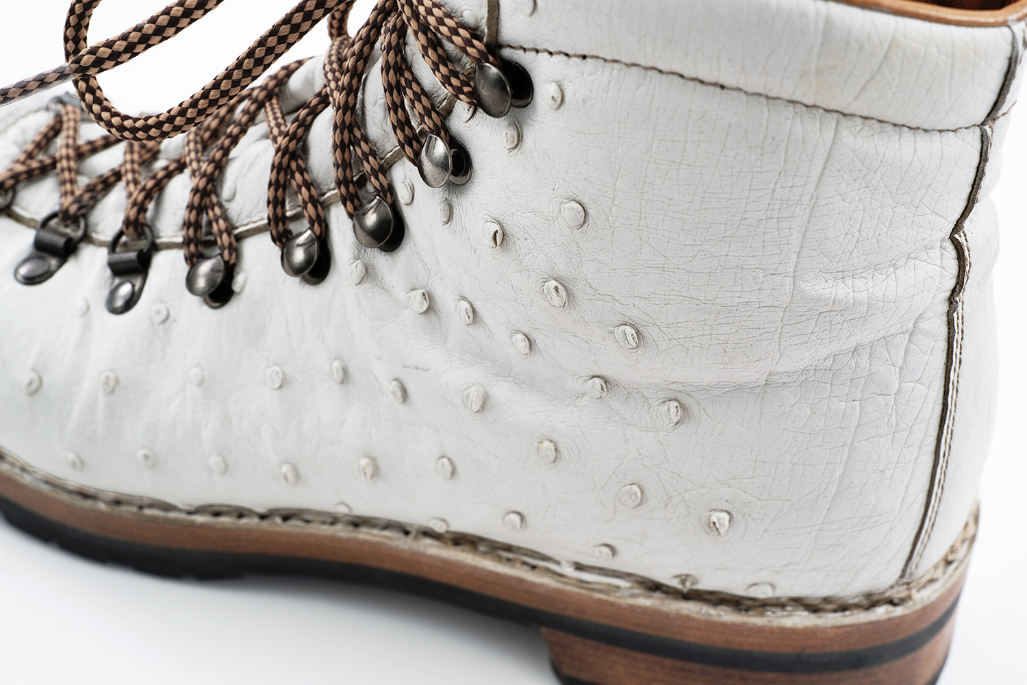 夏の雷雨の予想される日はショーツに合わせて、冬の雪の日はタイツに合わせて履いています。雪用に開発されたソールSt.Moritzですが日本の雪ではVibramと大差なく思います。ソールが厚く仕上がるのは魅力です。下ろす前、定期的に黒ワックスを甲、ノルベ糸、コバに塗っています。UTAH CALFは型押しながらブーツのクリンピングもできる柔らかい革です。クリーム等は厚塗りしないようにご注意ください。