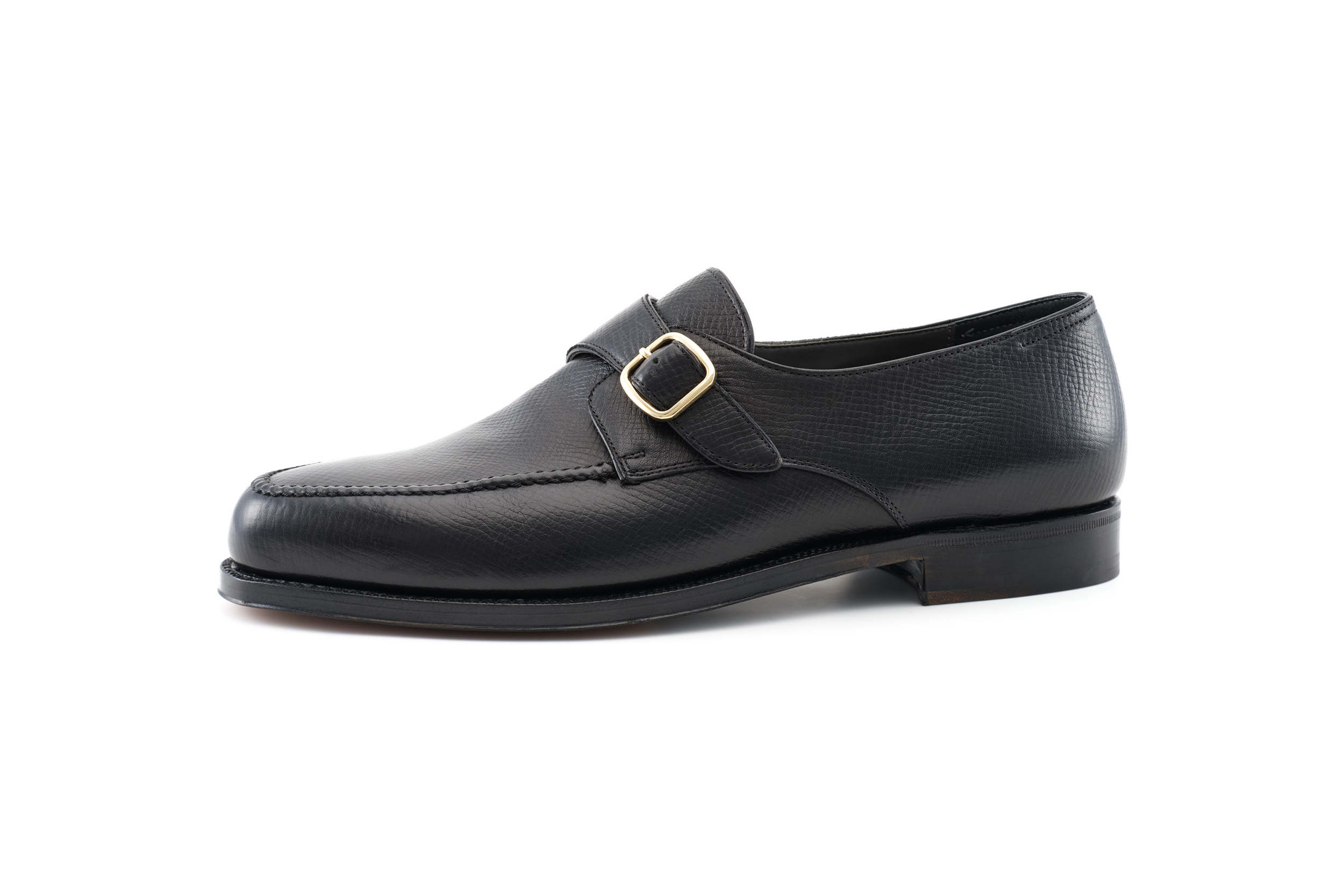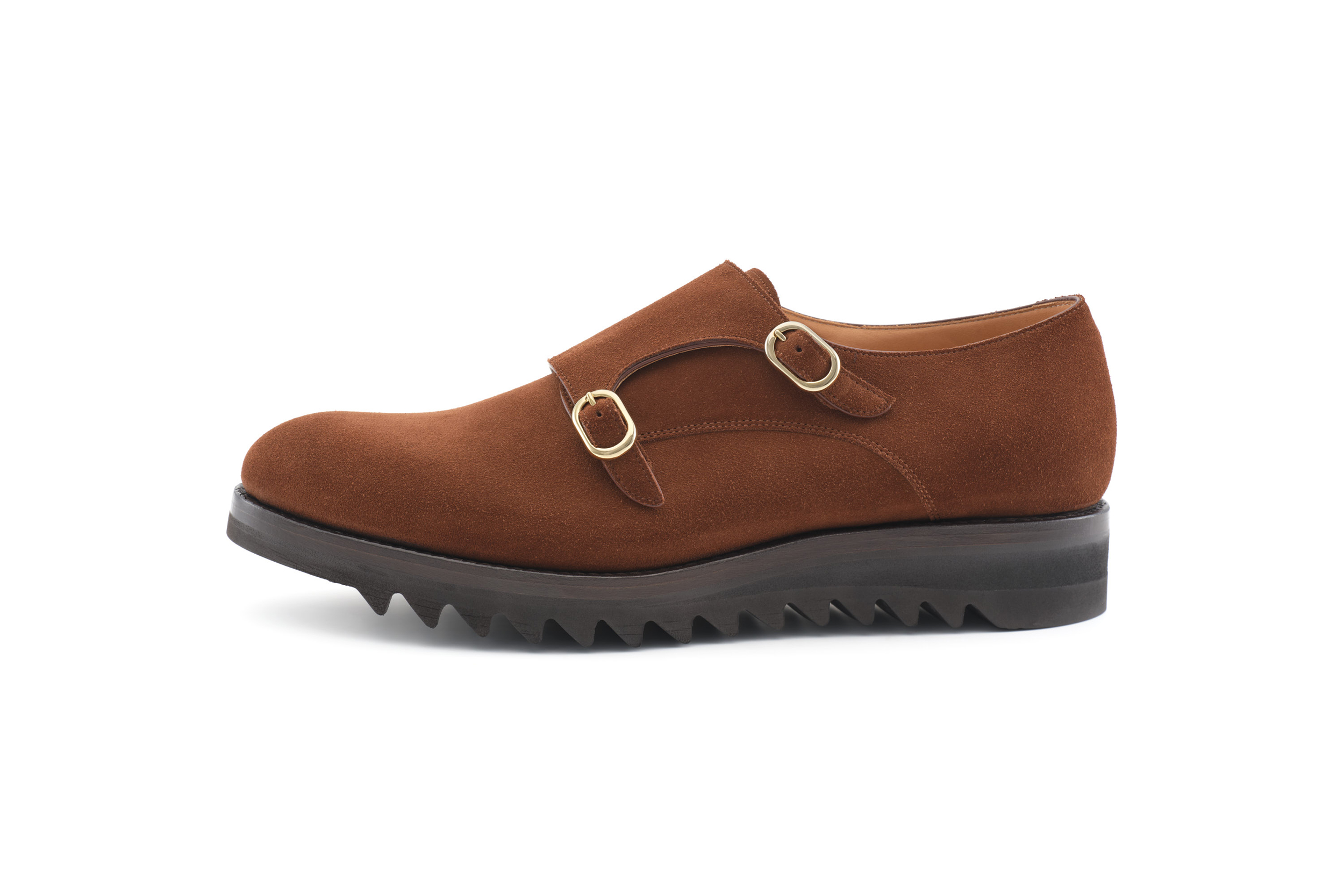 毛足が短くスポーティなサーフェイスで英国C.F.STEAD社を代表する革/SUPER BUCK、英国らしい焦げ茶/HOLBORN。ローファー設計木型を用いて履き口を広くしたsingle monk strapスタイルに好相性です。