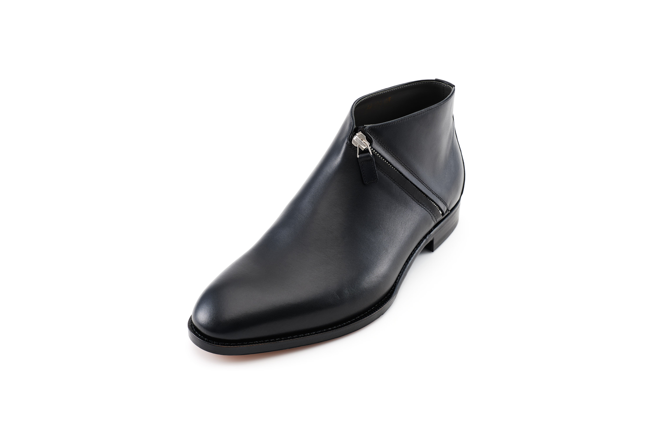 変則のファスナー位置とファスナートップがアクセントのくるぶし上丈のZIP UP BOOTY。