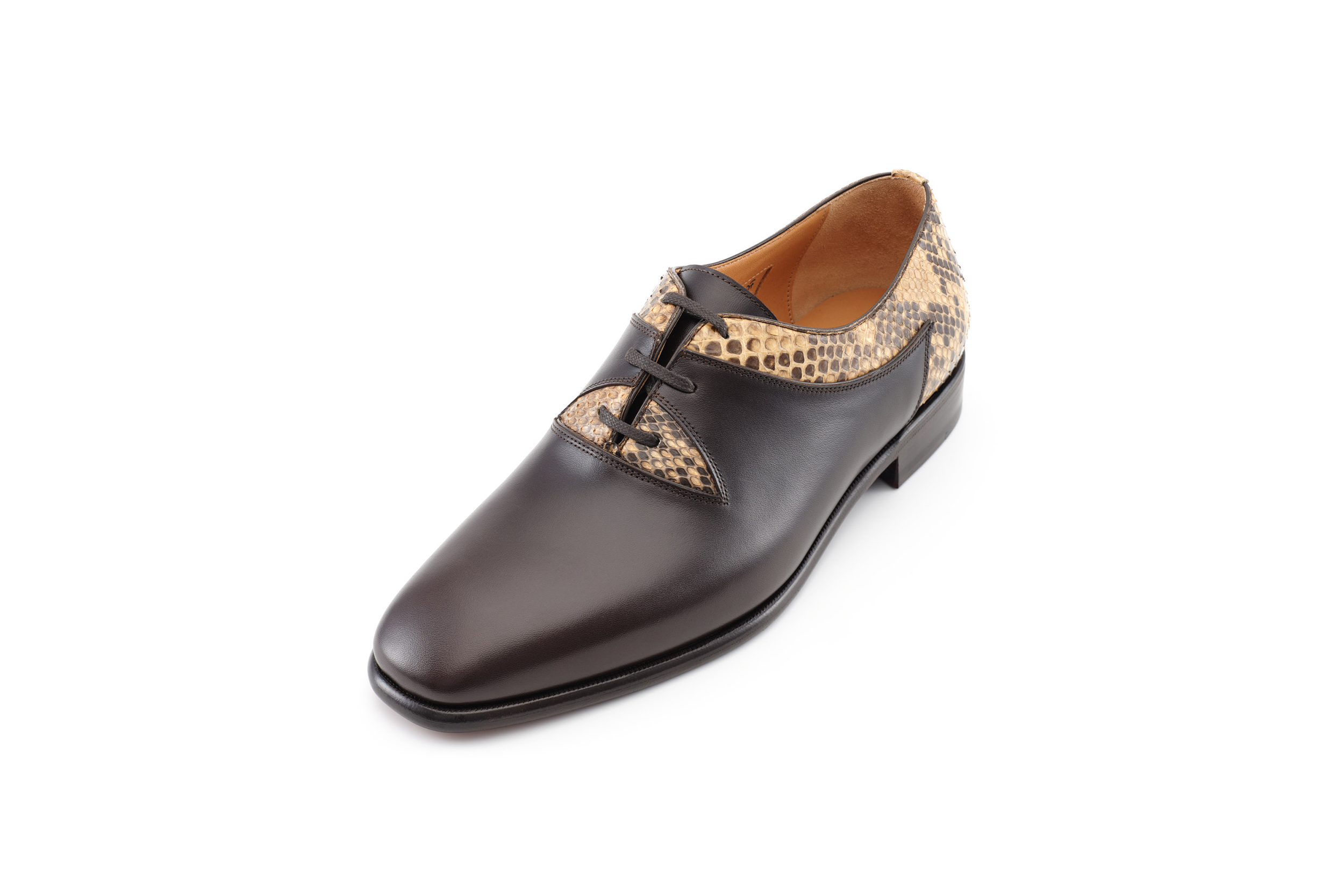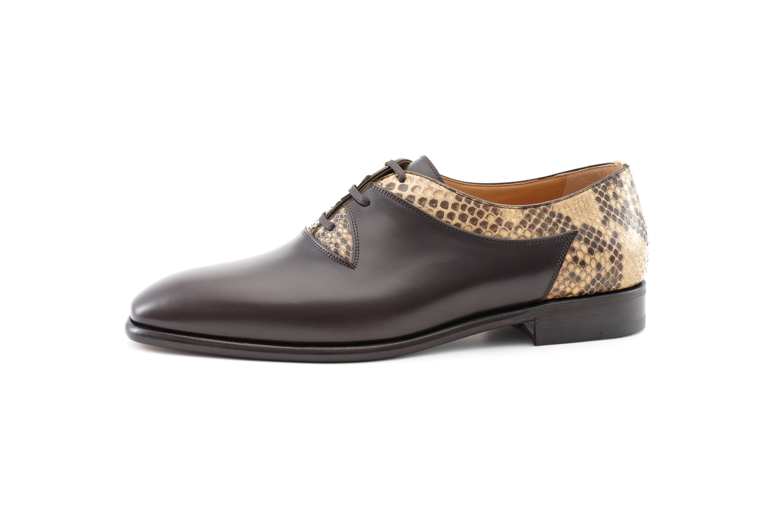 フレンチカーフx主張し過ぎない位置に配置されたダイヤモンドパイソンのコンビネーションオックスフォード。パンツの被り方次第で印象が変わります。