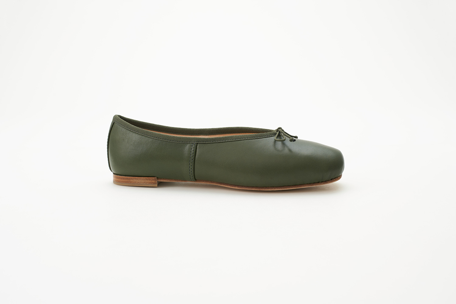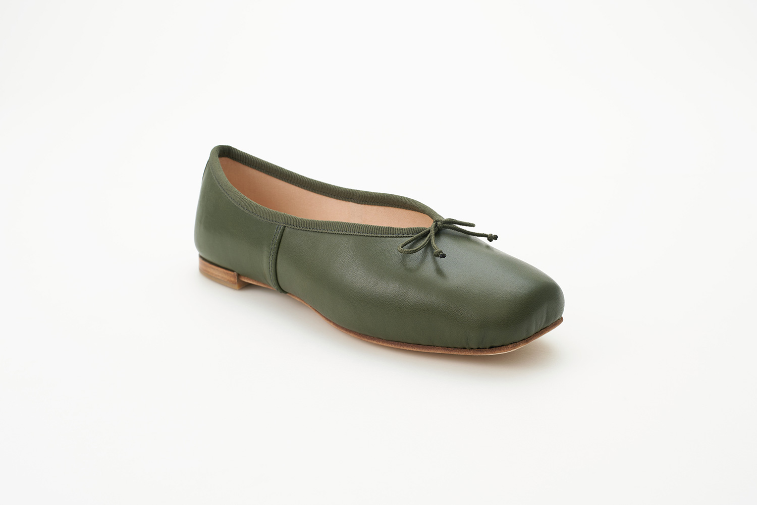 職人がワイヤーを用いて手でつり込み、縫製、整形仕上げとトゥシューズ(POINT SHOES)と同じ製法で縫われた靴は、接着で作られた靴にはない柔らかさが大きな特徴です。バレエの優美な世界の足元を支える職人の手で作られた靴です。