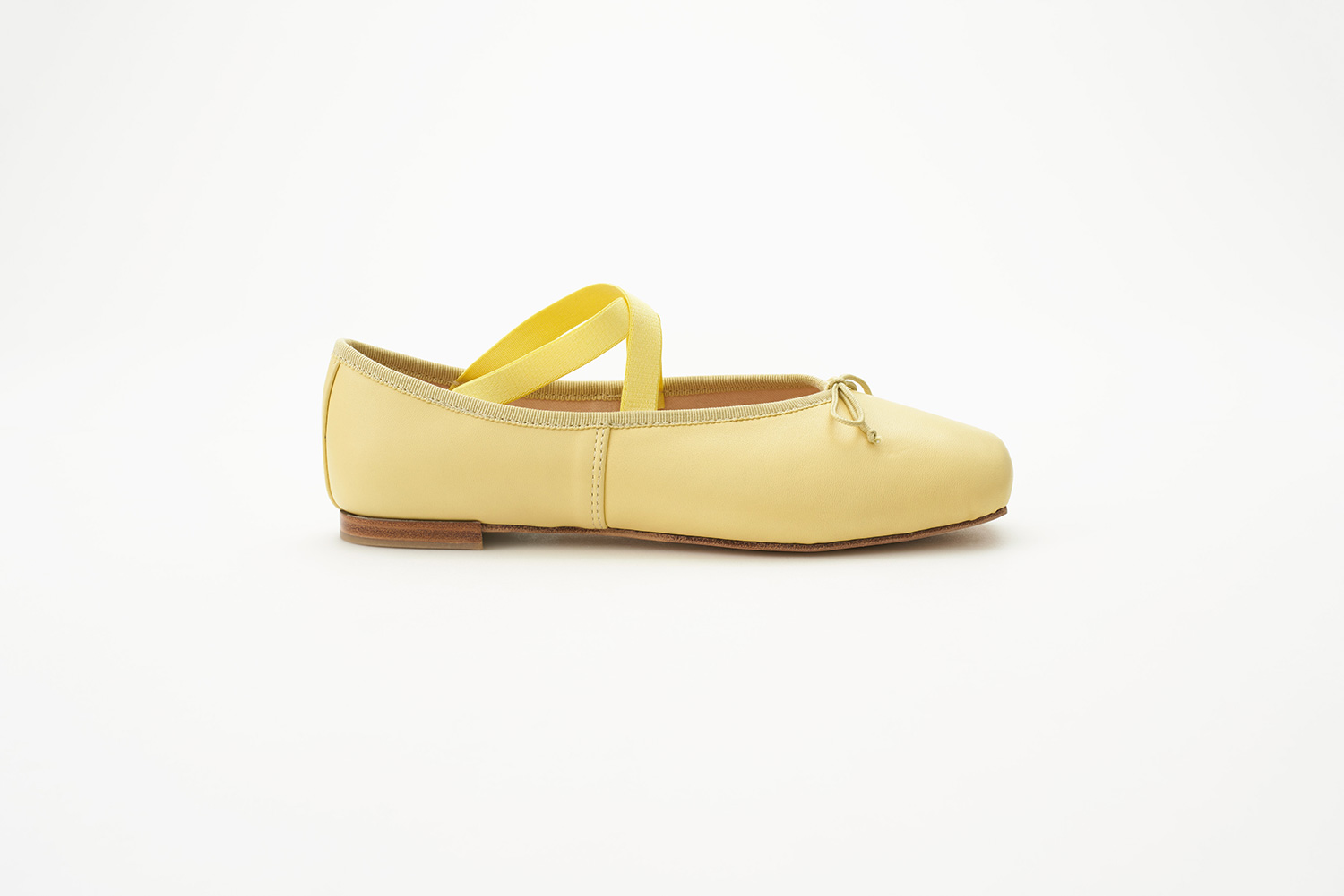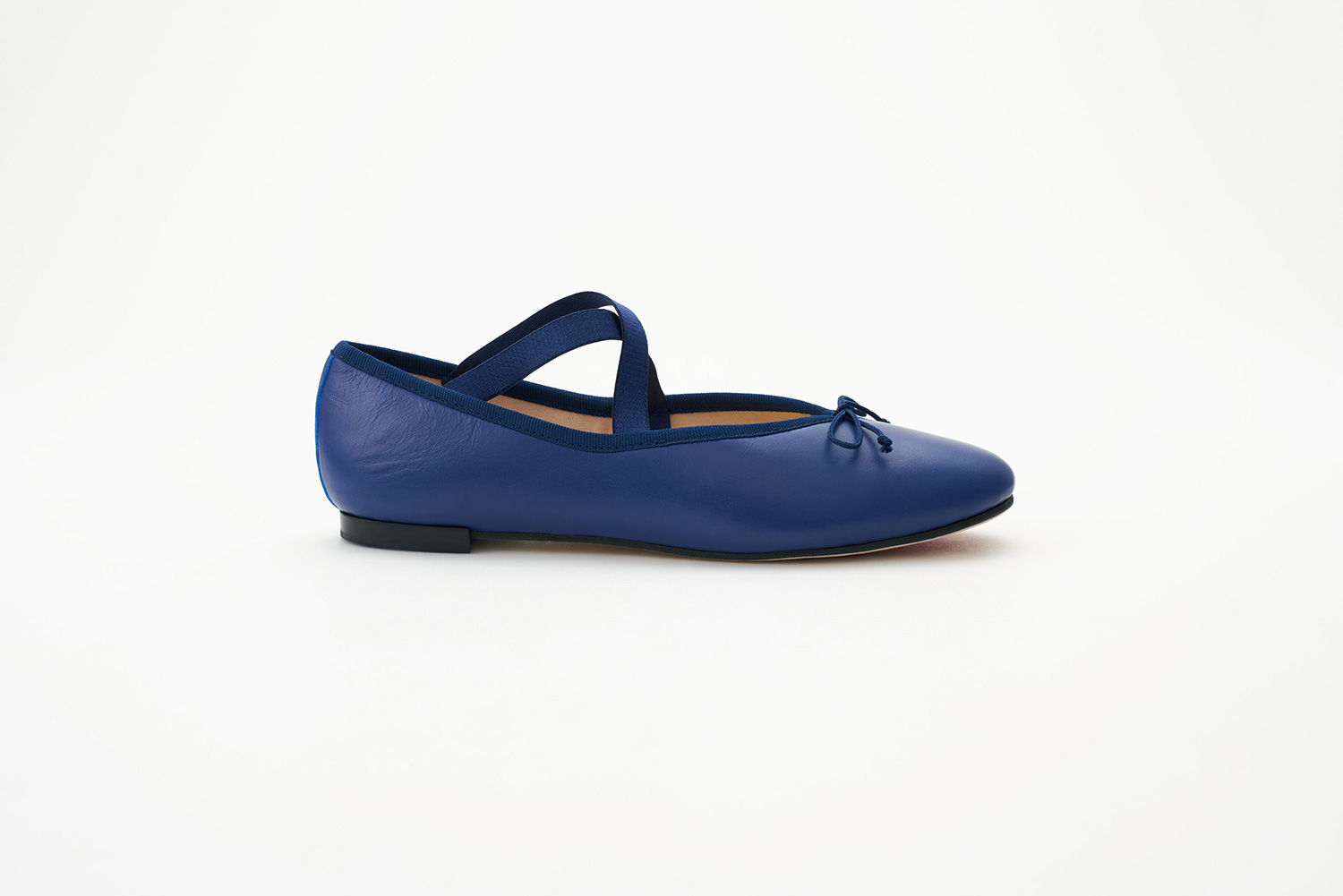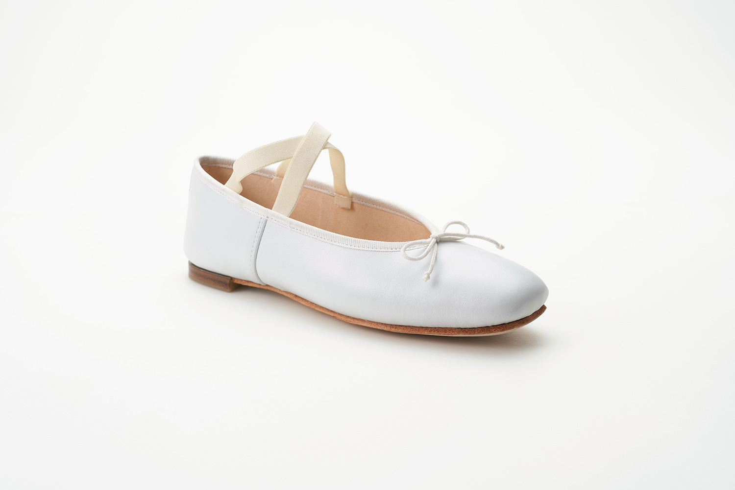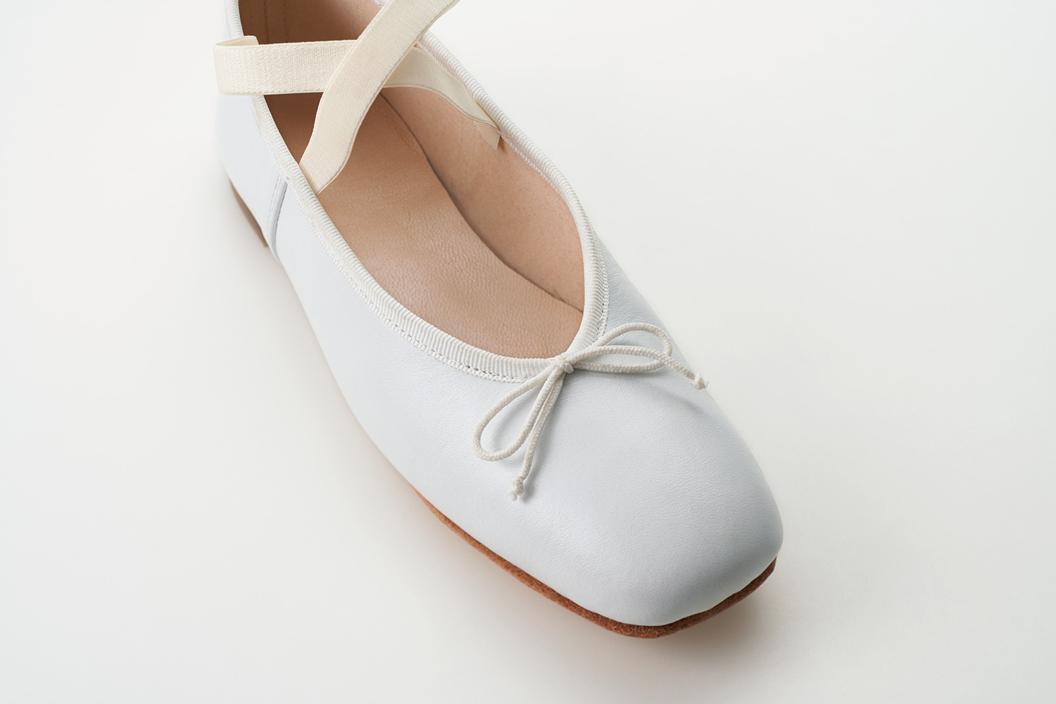 クロスに掛けられたエラスティックはMerlet社で作られているバレエシューズからきています。捨て寸のあるエレガントなスクウェアトゥは足元をスマートに見せます。