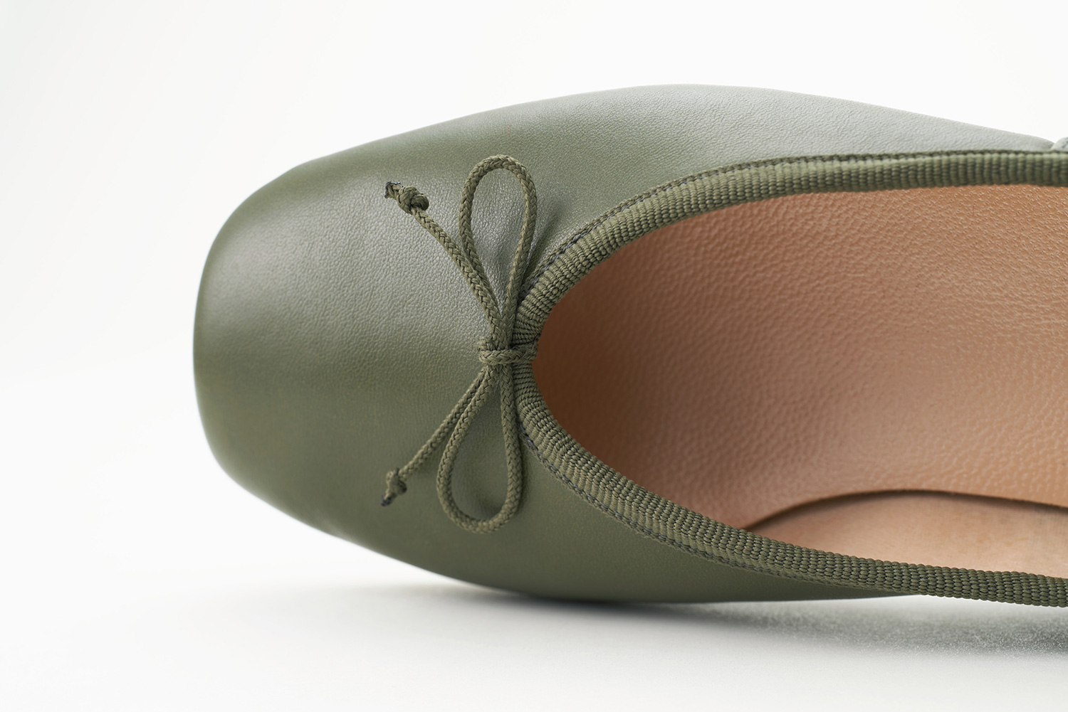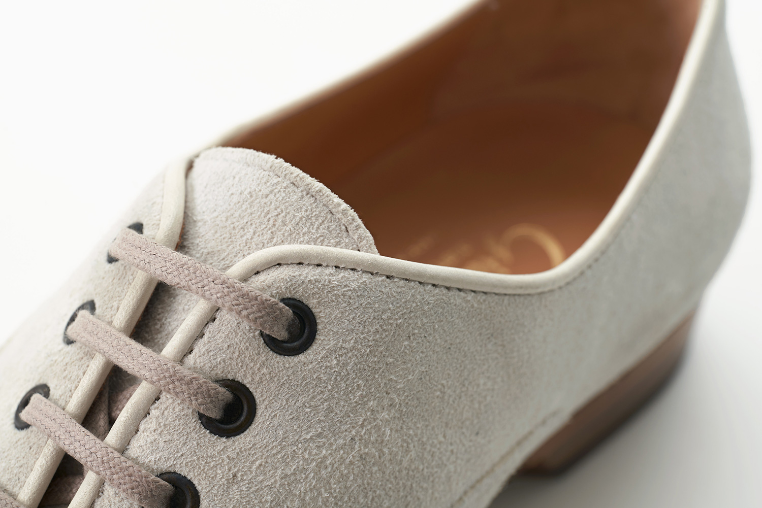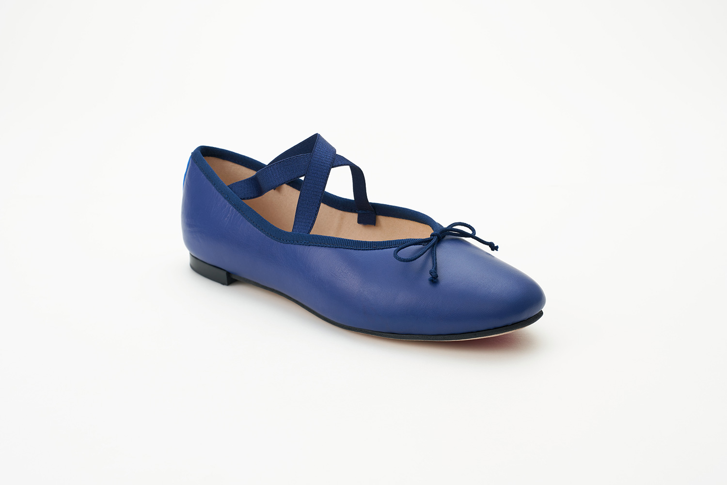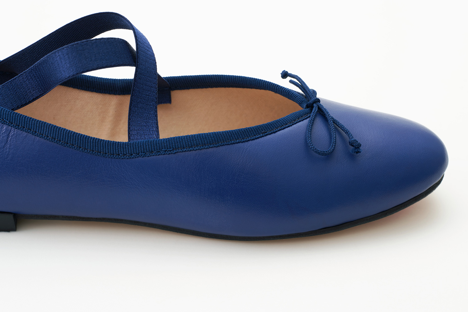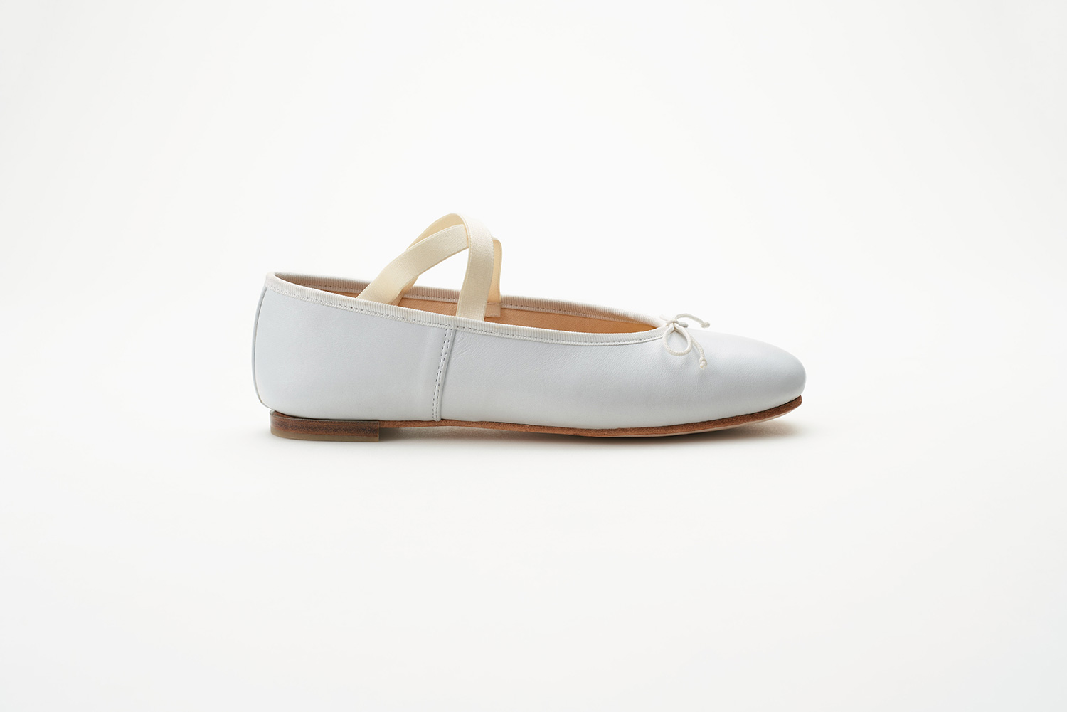 クロスに掛けられたエラスティックはMerlet社で作られているバレエシューズからきています。捨て寸のあるエレガントなスクウェアトゥは足元をスマートに見せます。