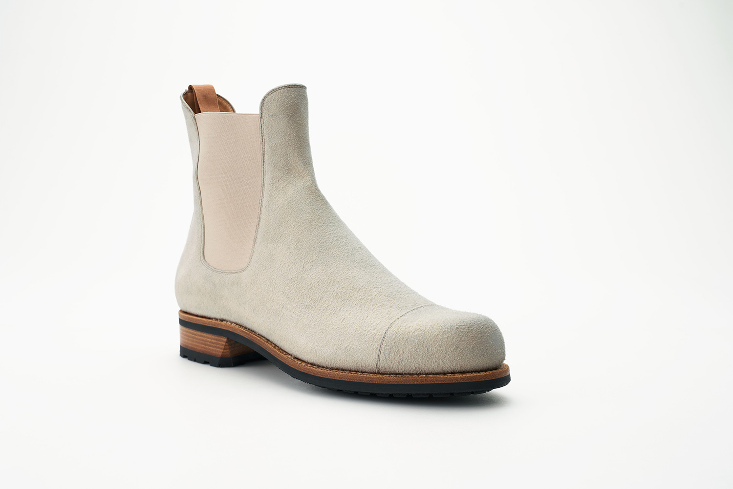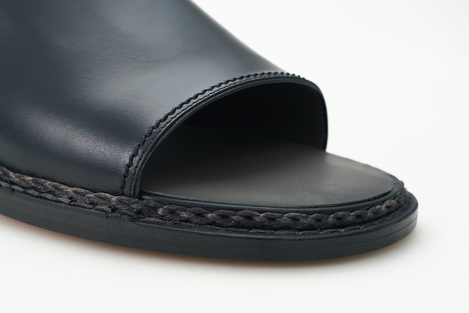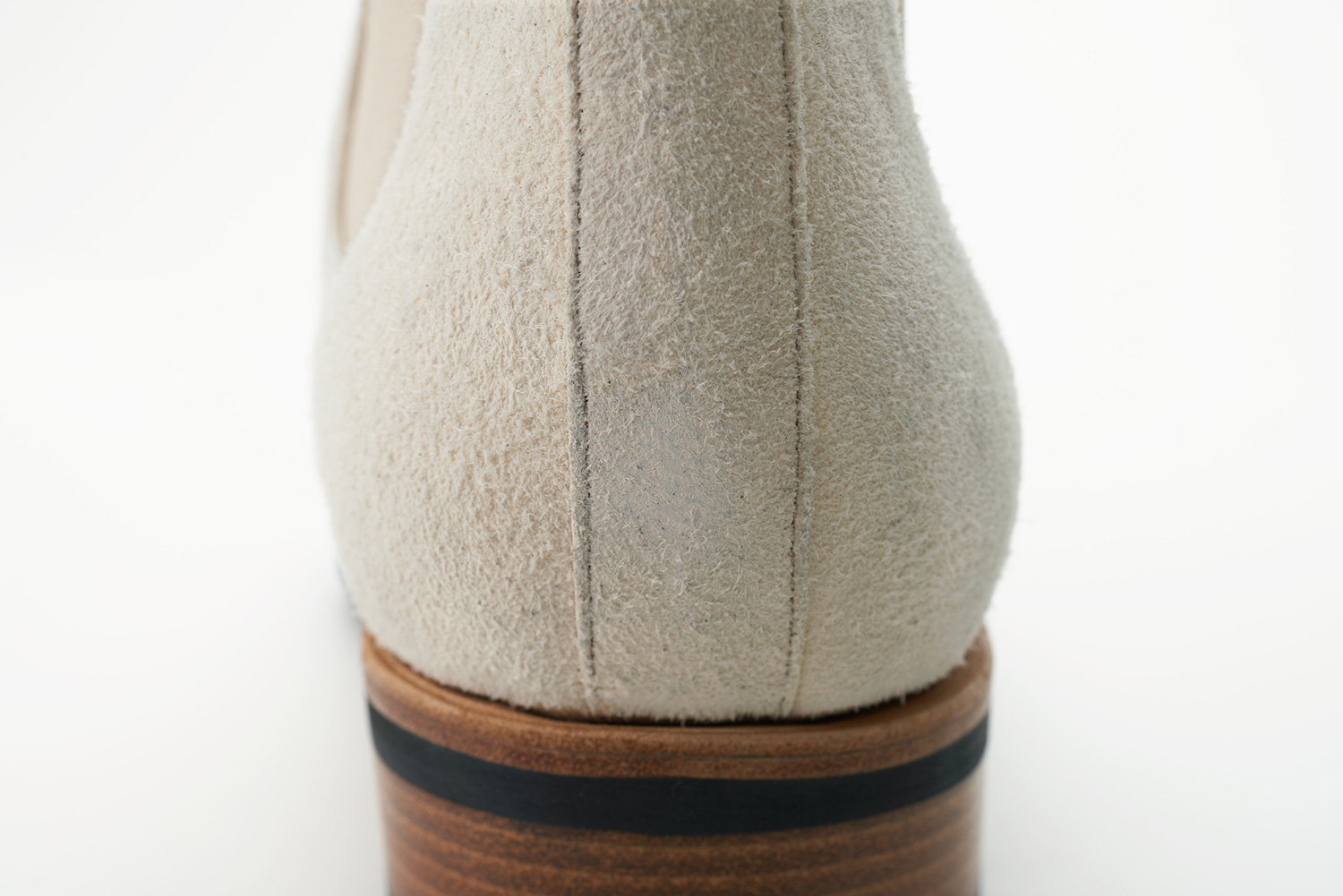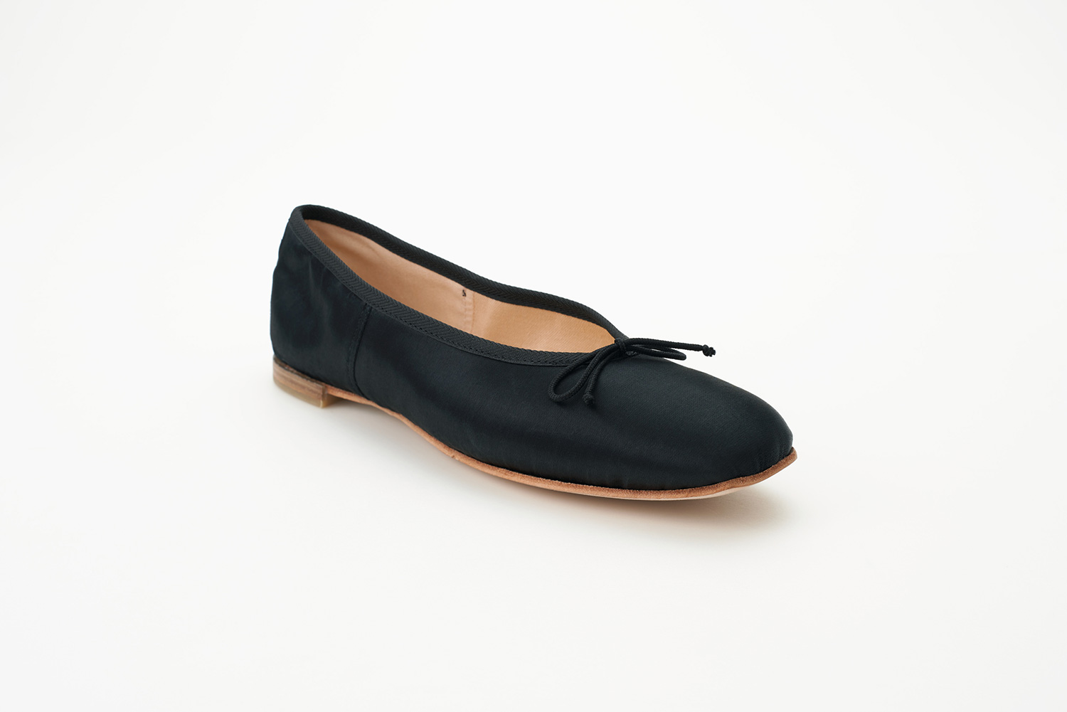 ステッチアンドリターン製法で縫われた靴は柔軟性に優れています。 Merlet社で作られているトゥシューズと同様に踵側のアッパーを袋状に縫製、履き口には杉綾テープを用いることで表情豊かに仕上がっています。アッパーにはトゥシューズ(POINTE SHOES)の素材を用いています。