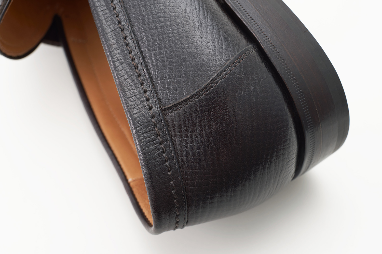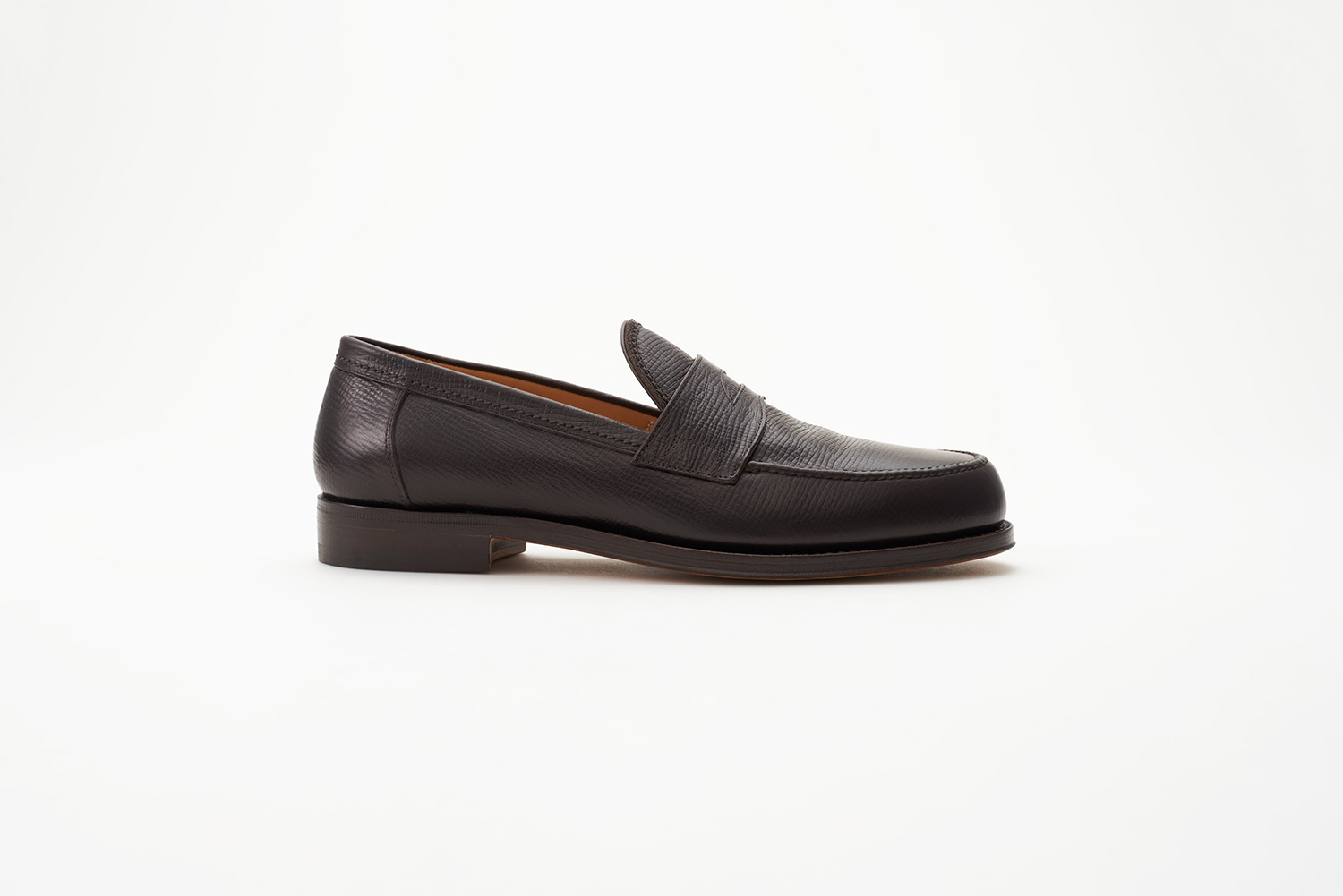 兄Luiginoの名前から命名されたローファー専用木型。2022より新たに取引を始めたフランスのタンナリーHAAS社の型押しカーフ。クラシックな型押しに柔らかくオイリーな革がハンドモカの表情を豊かに見せています。