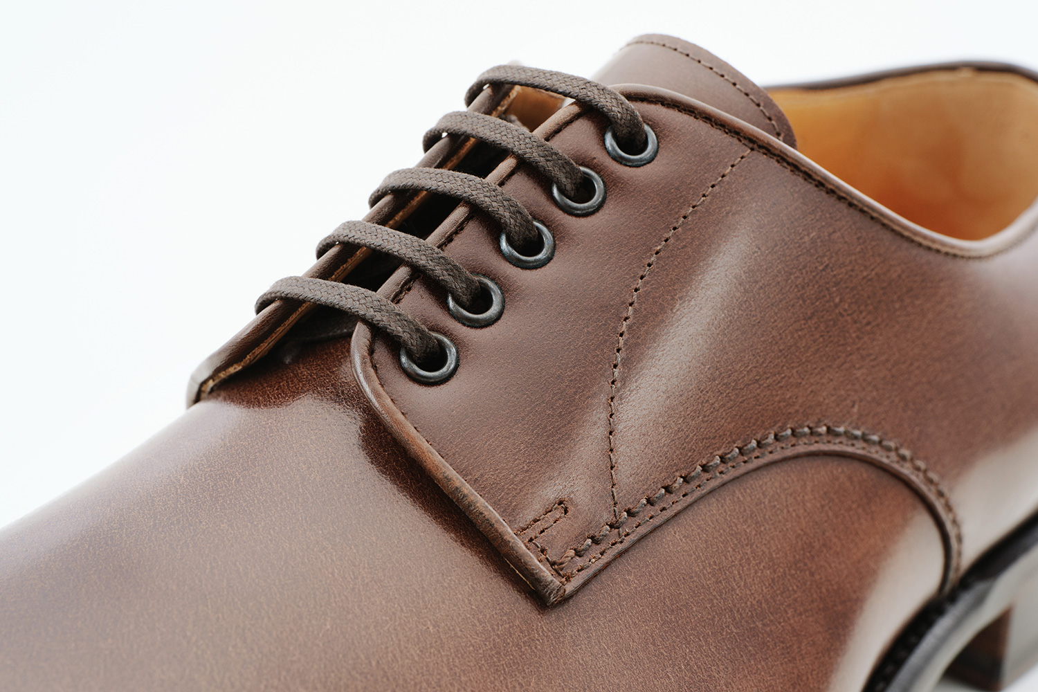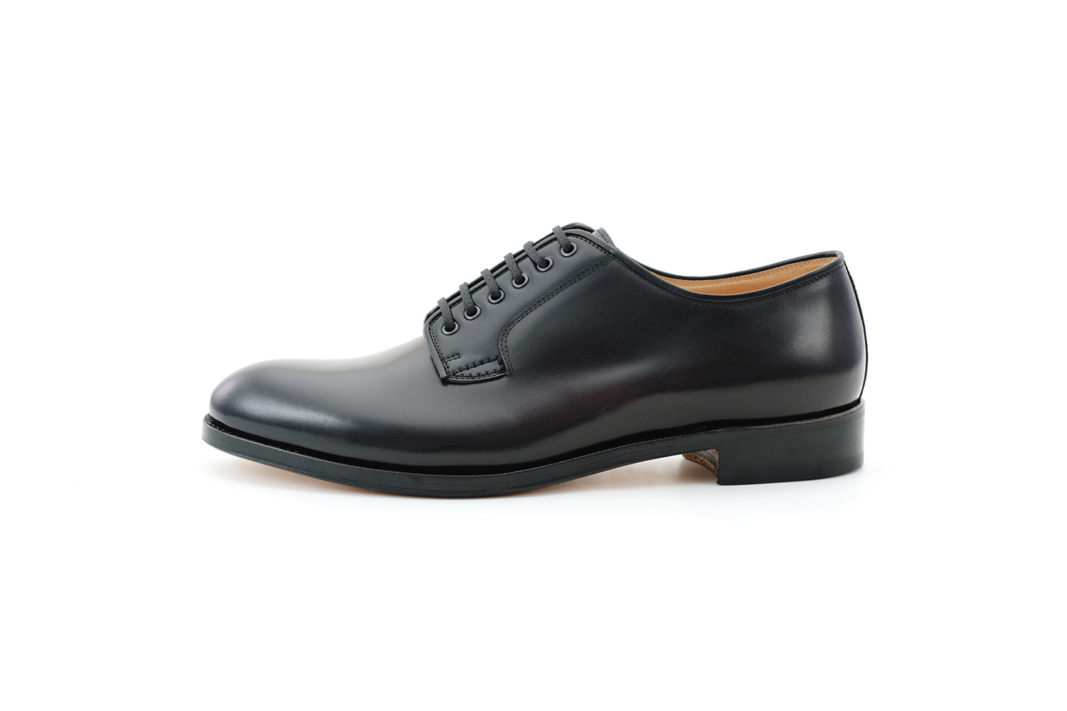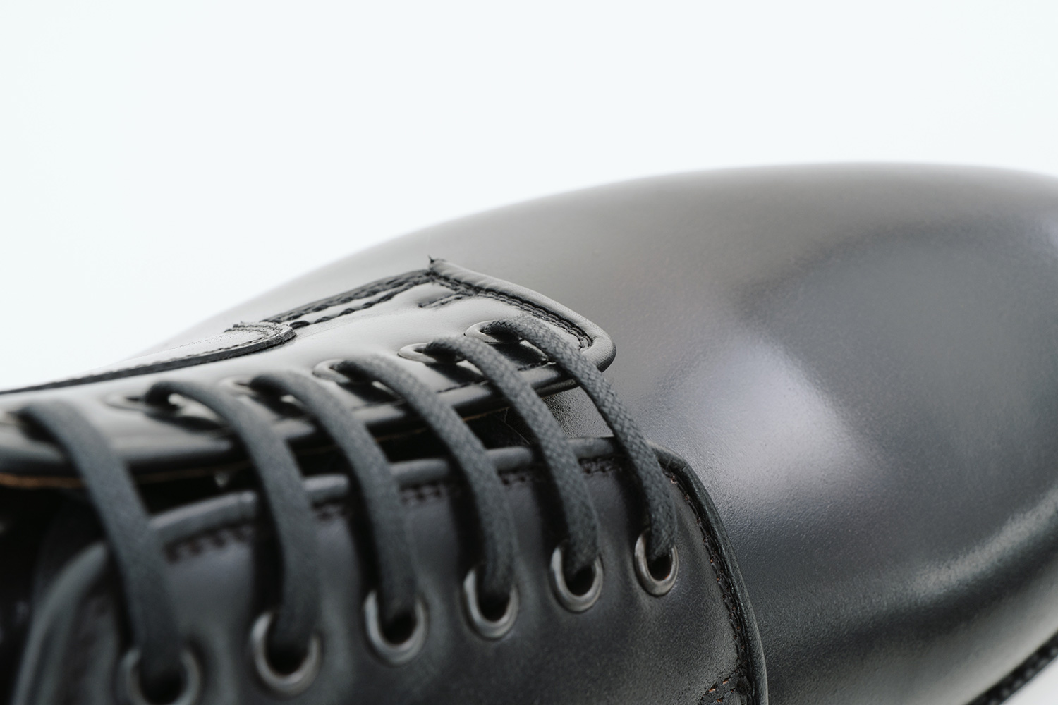 CORDVANは馬臀部スエード面にあるコードバン層に光沢加工をした繊細な革です。革の特質と職人の癖に合わせた型紙のDERBY SHOES。