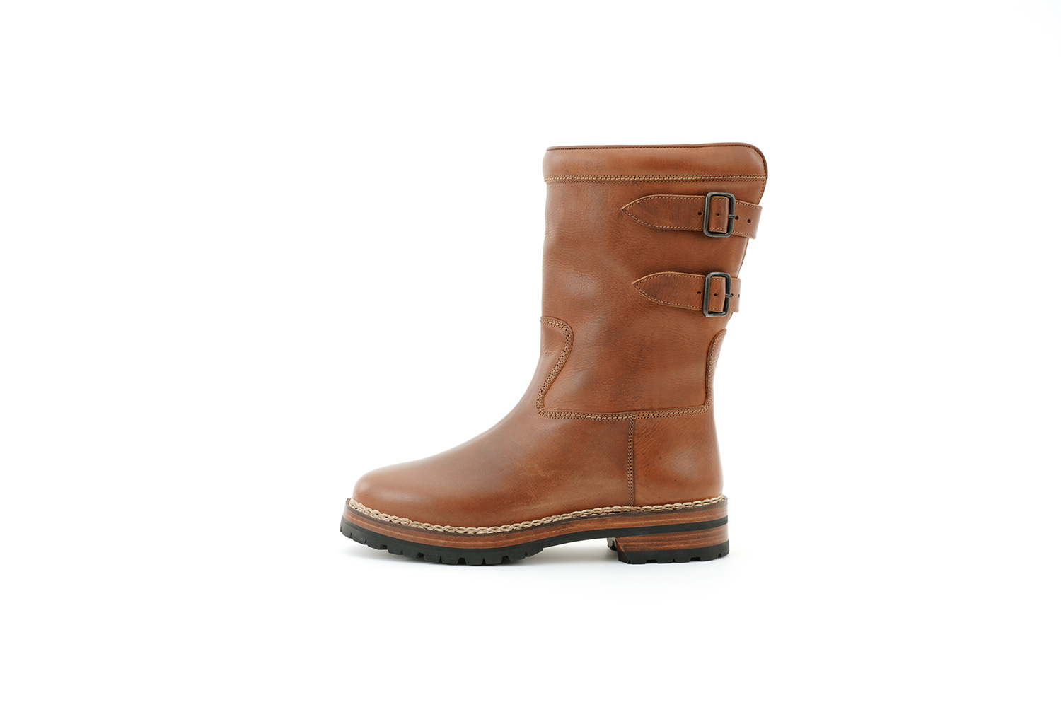 F.LLI Giacomettiの山靴スタイルラインのMarmolada。大きなスクエアトゥは、この地方で作られていたノルベジェーゼ製法のスキーブーツの木型に由来しています。