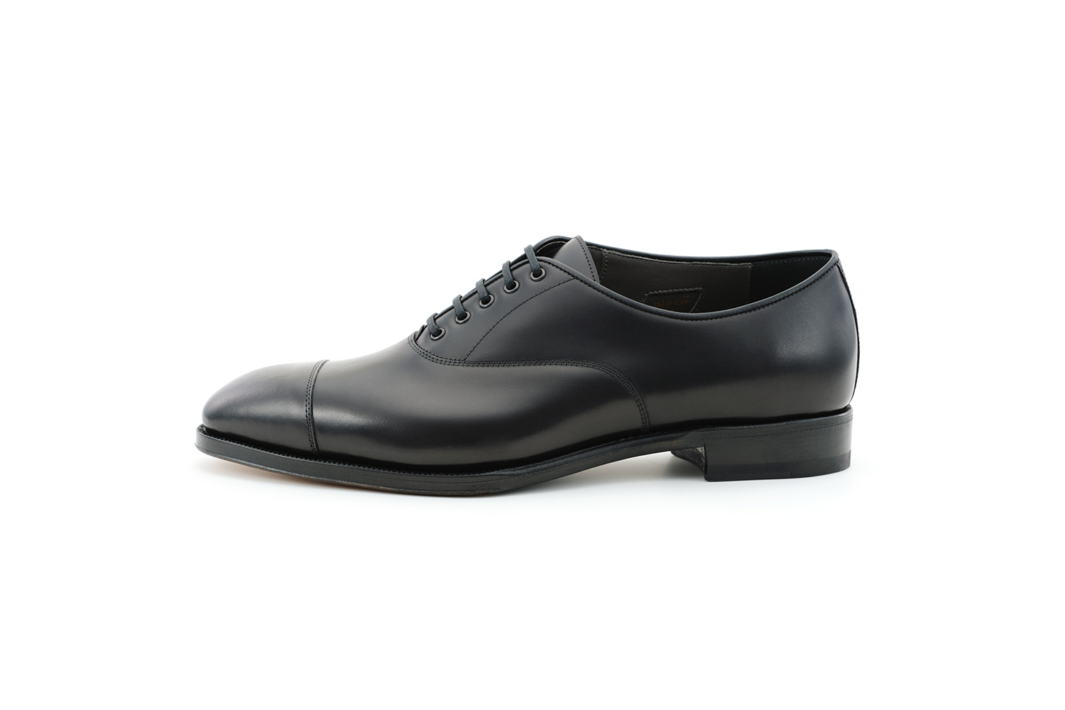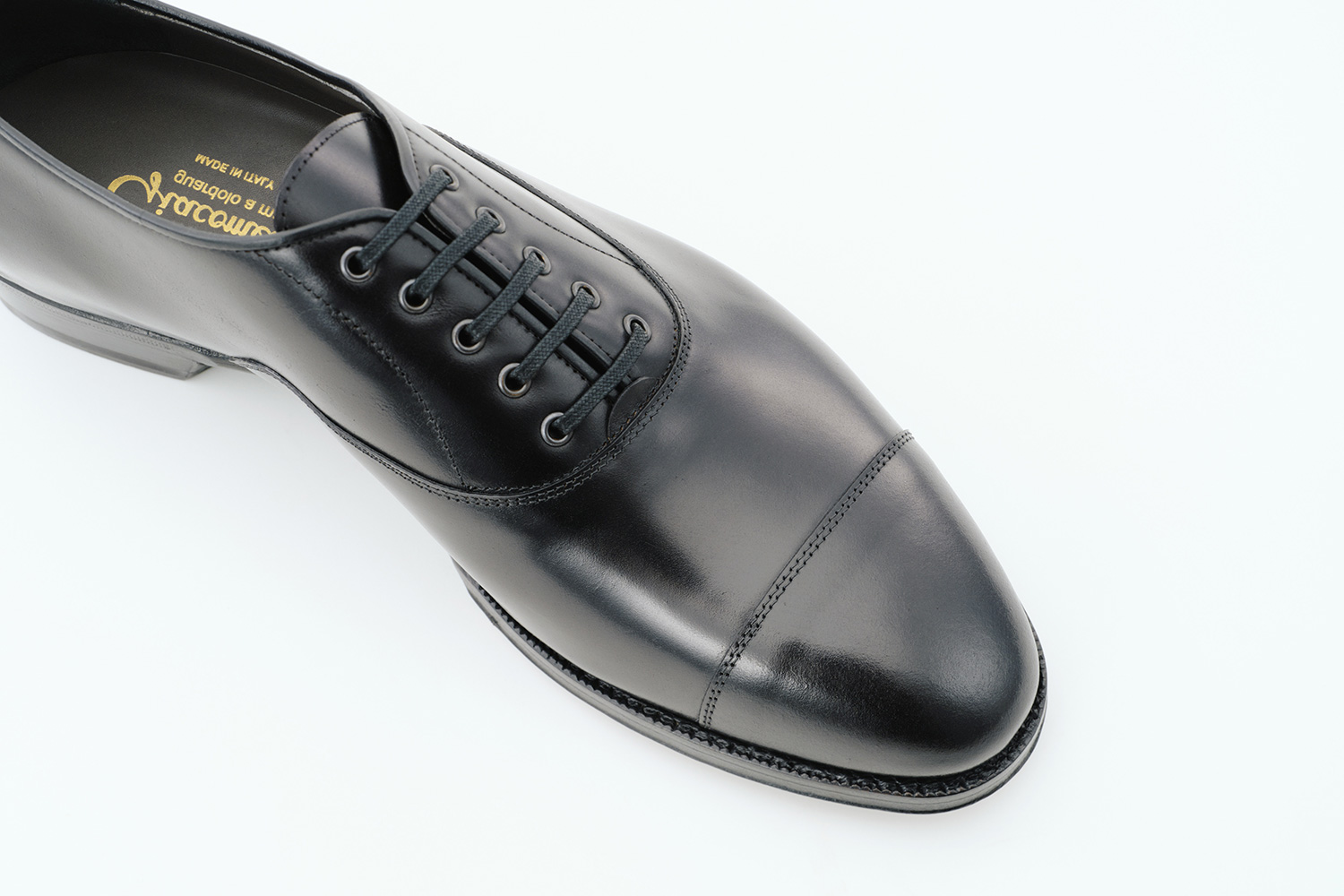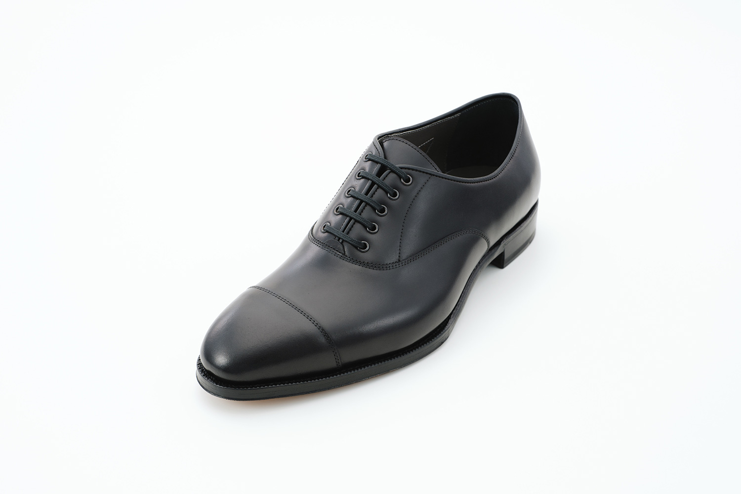 正装スタイルの代表CAP TOE OXFORD+捻じれ/曲がって見えるオブリークトゥ木型。甲革のコードバンが、正装クラシックなスタイルとは真逆のスタイリングを想像させます。 SHOES。