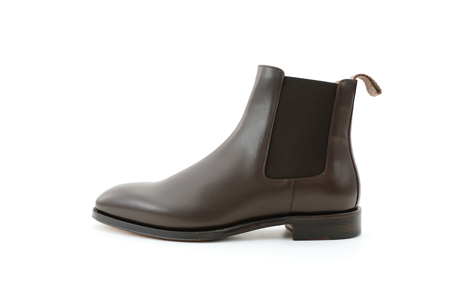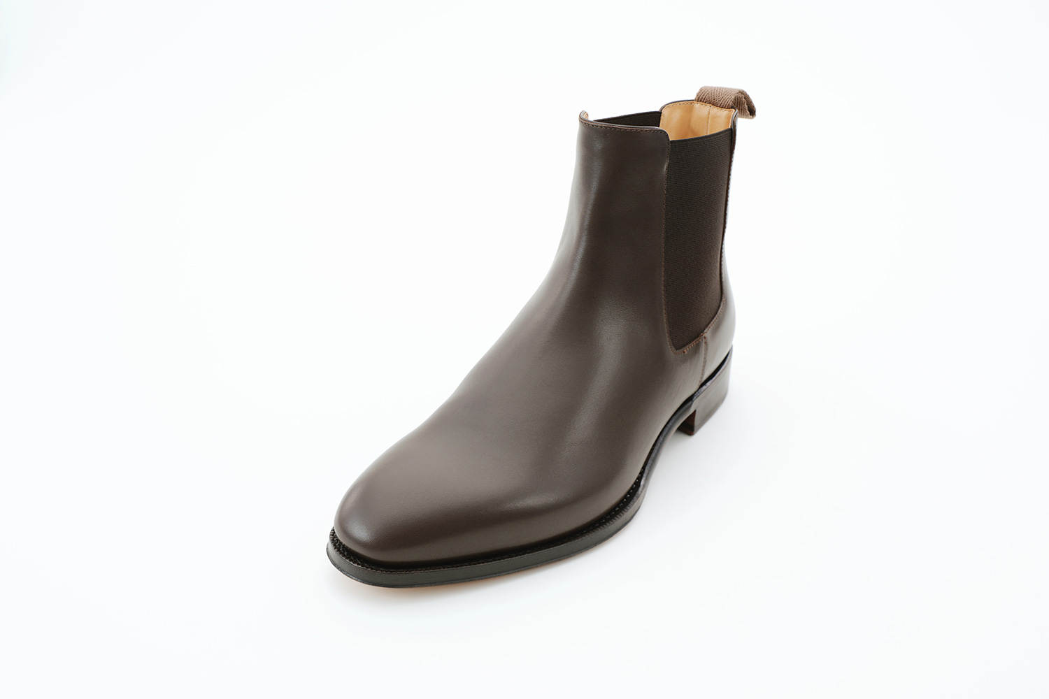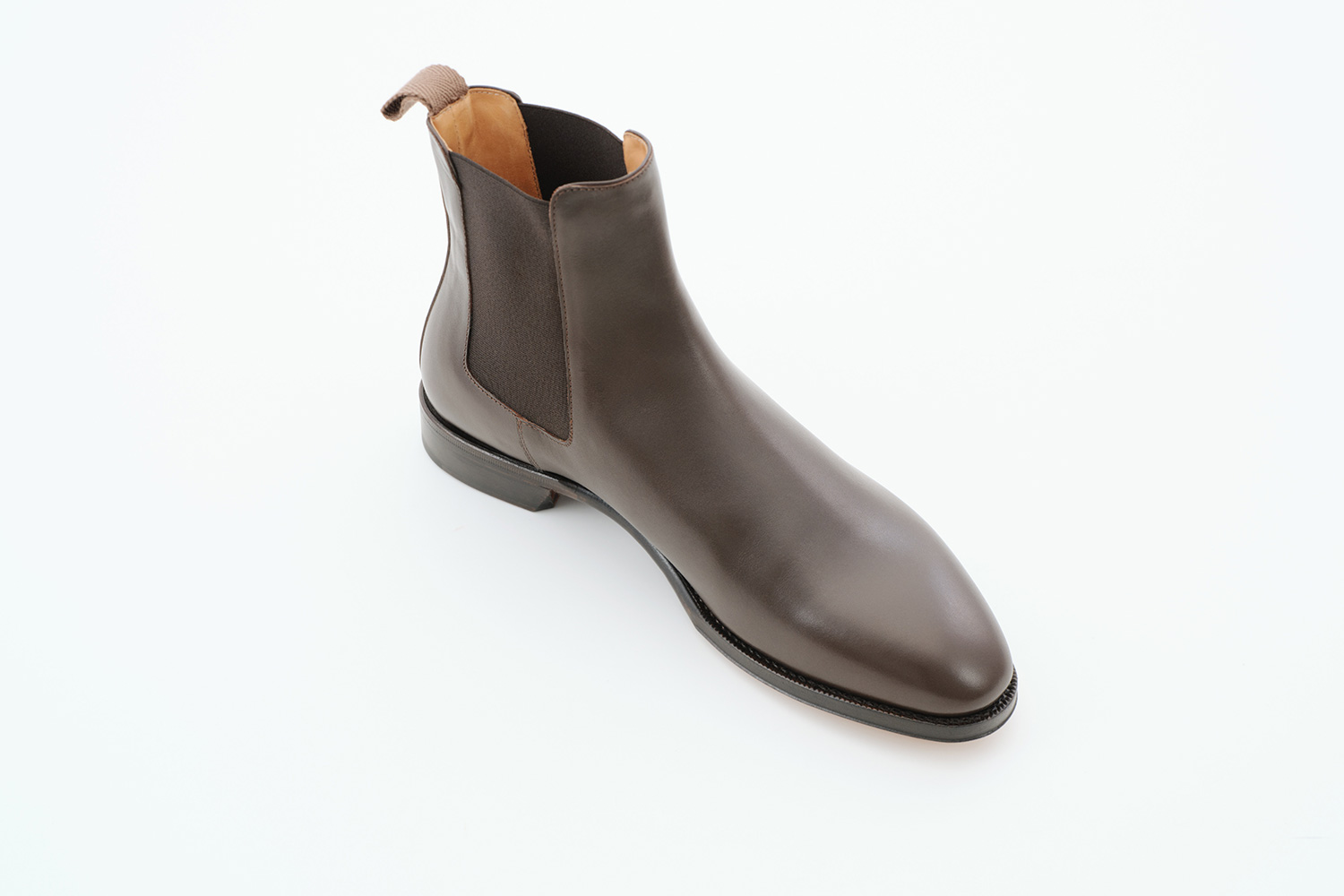 エジプト型、ギリシャ型の足に合うオブリークトゥのブーツ木型。肌理の細かいカーフを丁寧にライニングをもクイッピング(癖とり)をしたSIDE GORE BOOTSは美しい佇まいです。