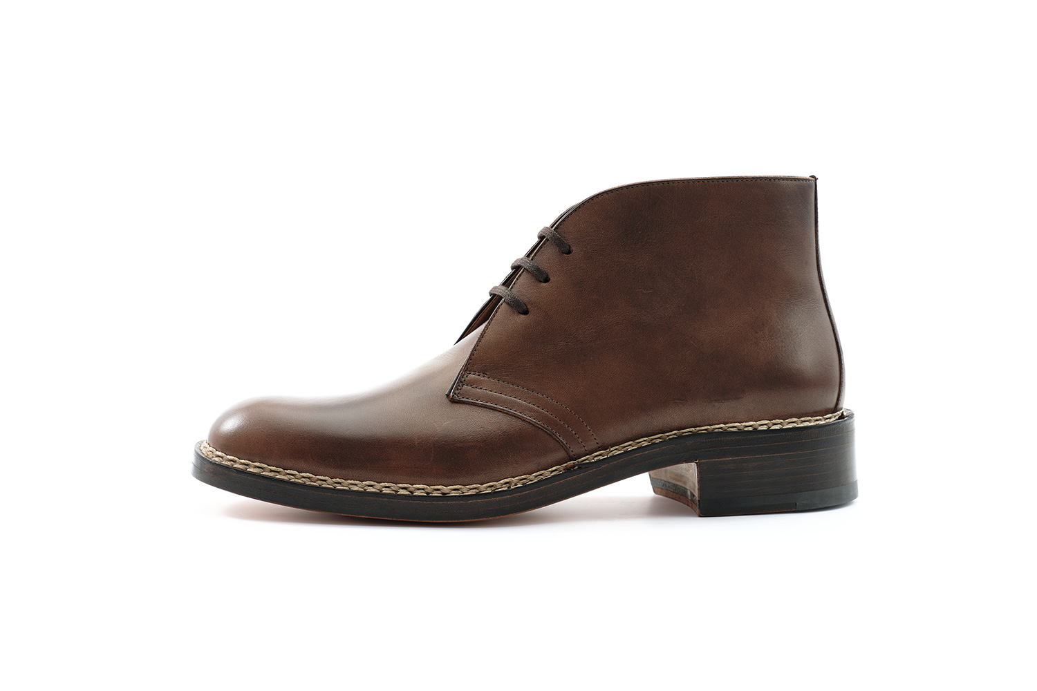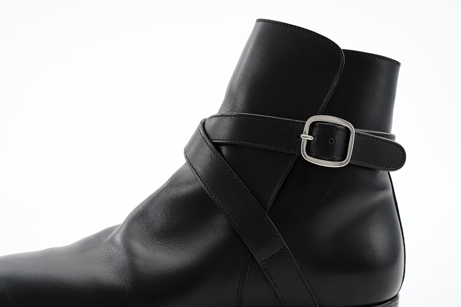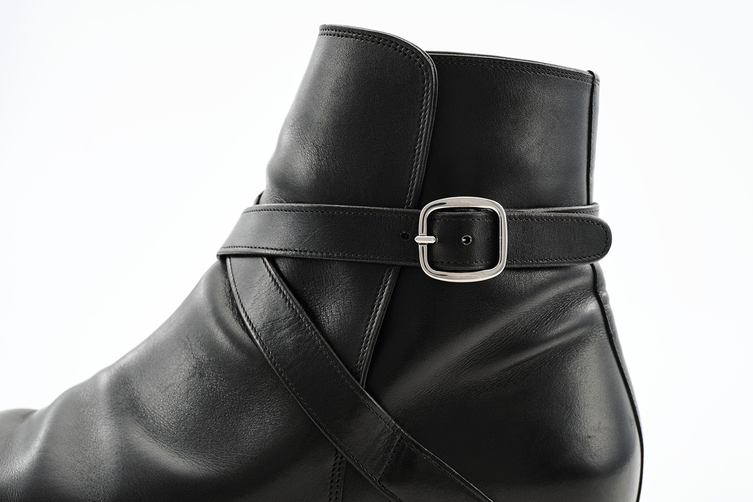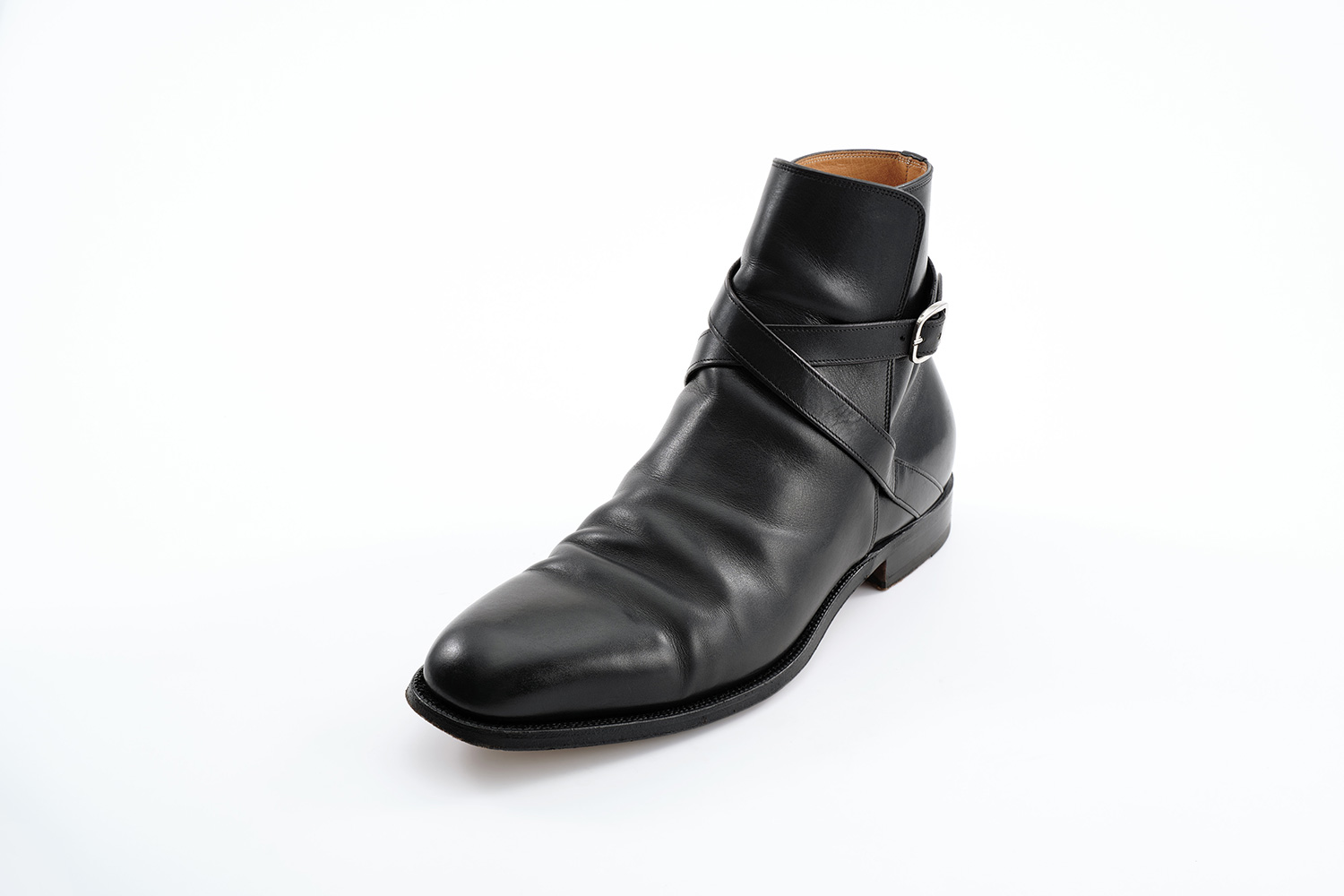 履くことで甲から足首にかけて足に沿った味わいある癖がついていきます。肌理の細かいカーフ、切り口から覗くカンガルー革、丸く削られたベルト等の丁寧な仕事がクラシックブーツの佇まいに仕上がっています。手入れは下ろす前の黒クリームと数回に1度のブラッシングです。