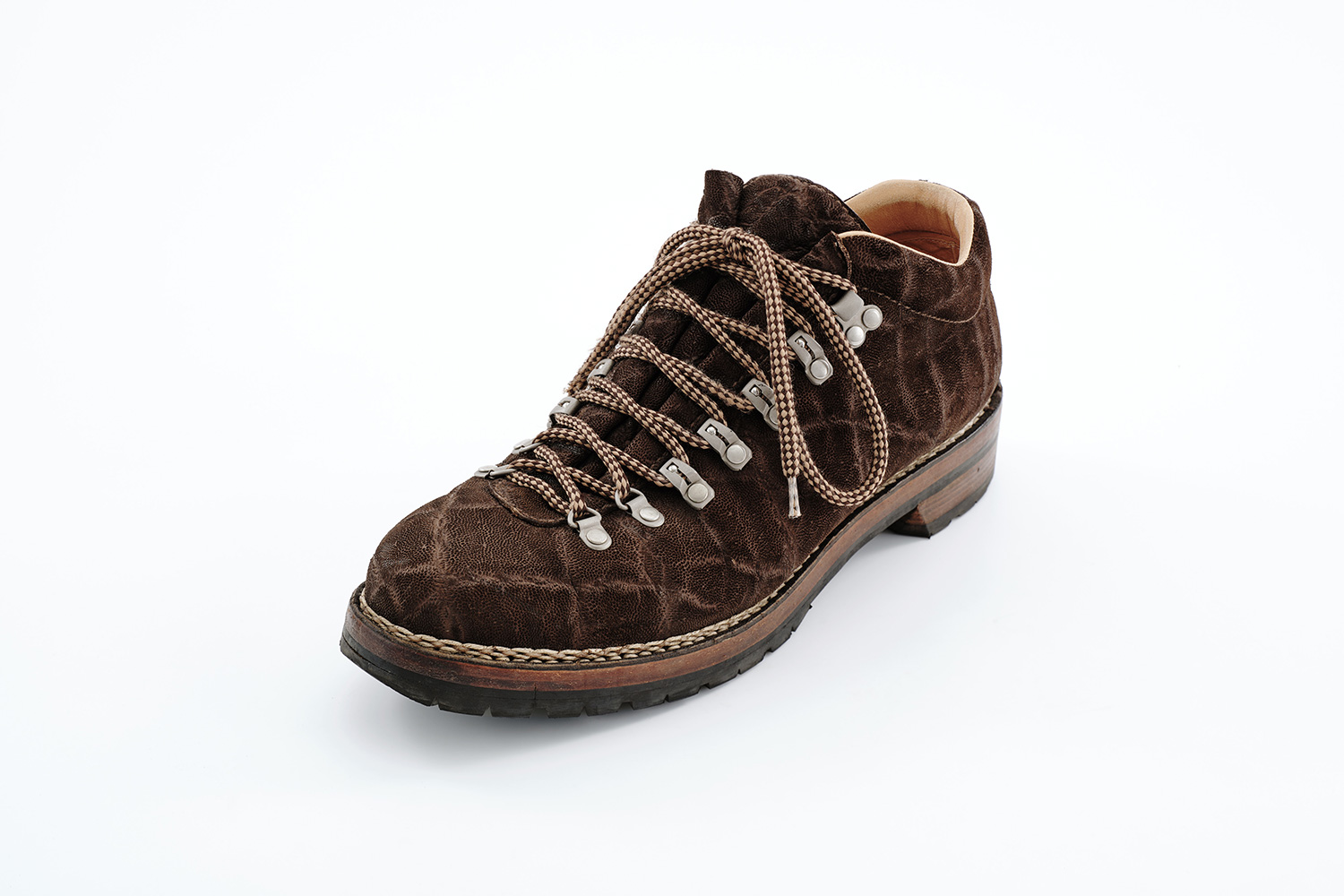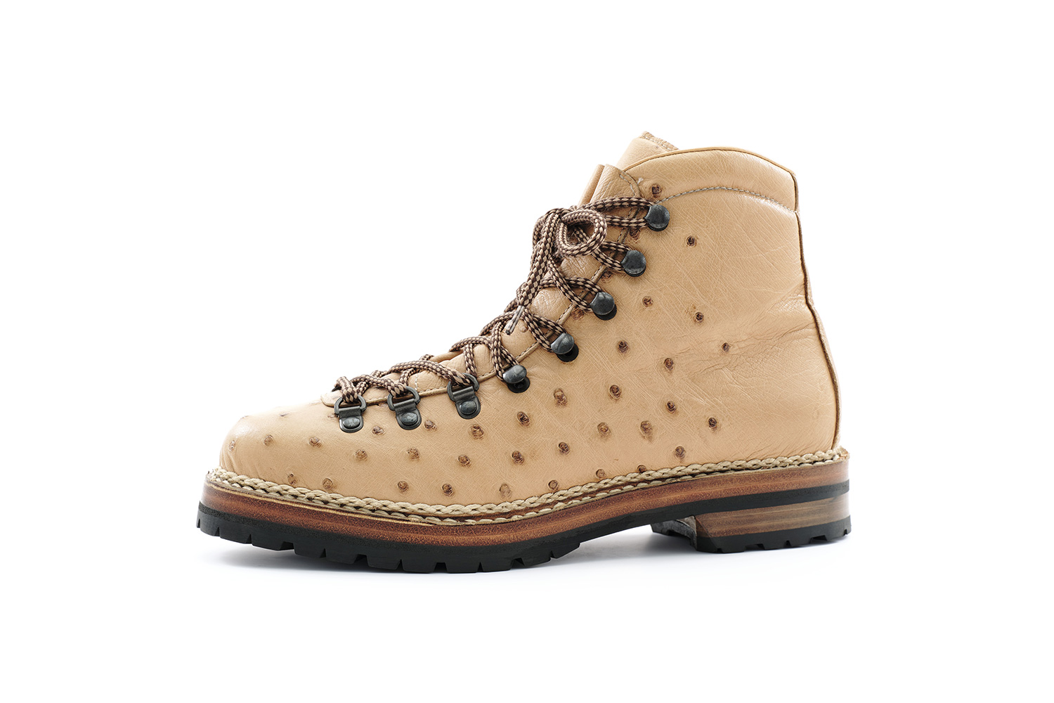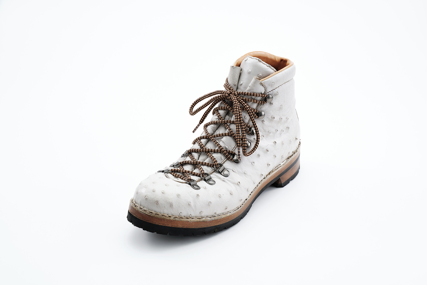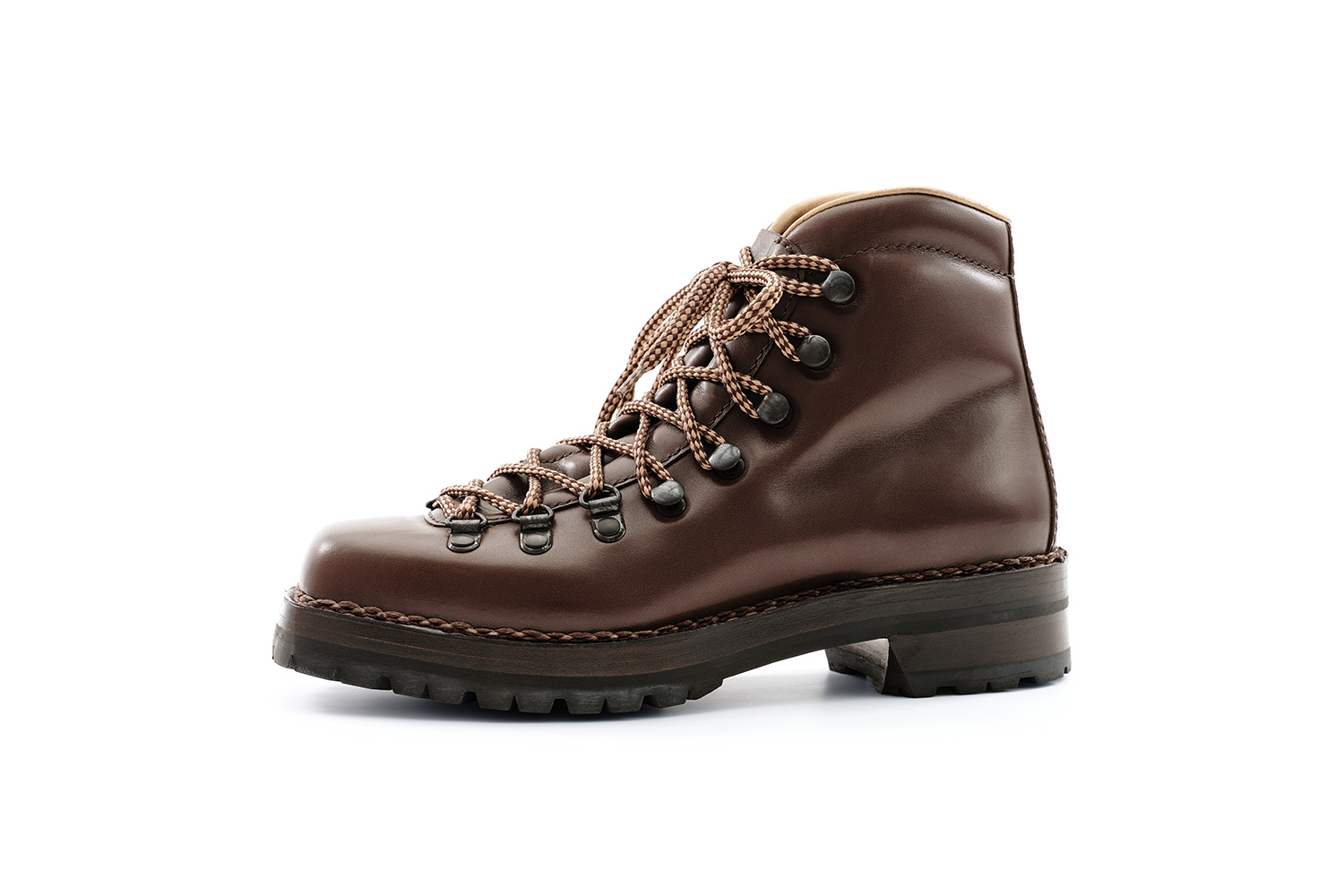 夏の雷雨の予想される日はショーツに合わせて、冬の雪の日はタイツに合わせて履いています。雪用に開発されたソールSt.Moritzですが日本の雪ではVibramと大差なく思います。ソールが厚く仕上がるのは魅力です。下ろす前、定期的に黒ワックスを甲、ノルベ糸、コバに塗っています。UTAH CALFは型押しながらブーツのクリンピングもできる柔らかい革です。クリーム等は厚塗りしないようにご注意ください。