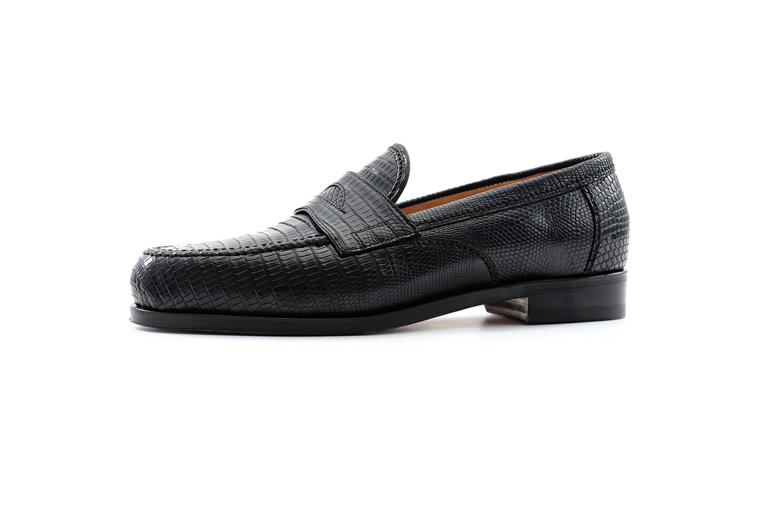 トカゲ革をはじめエキゾチックレザーは軽く柔らかいため女性にも履き易いようです。手入れはシーズン数回の黒ワックスと着用前のブラッシングをしています。雨天の着用はしていません。