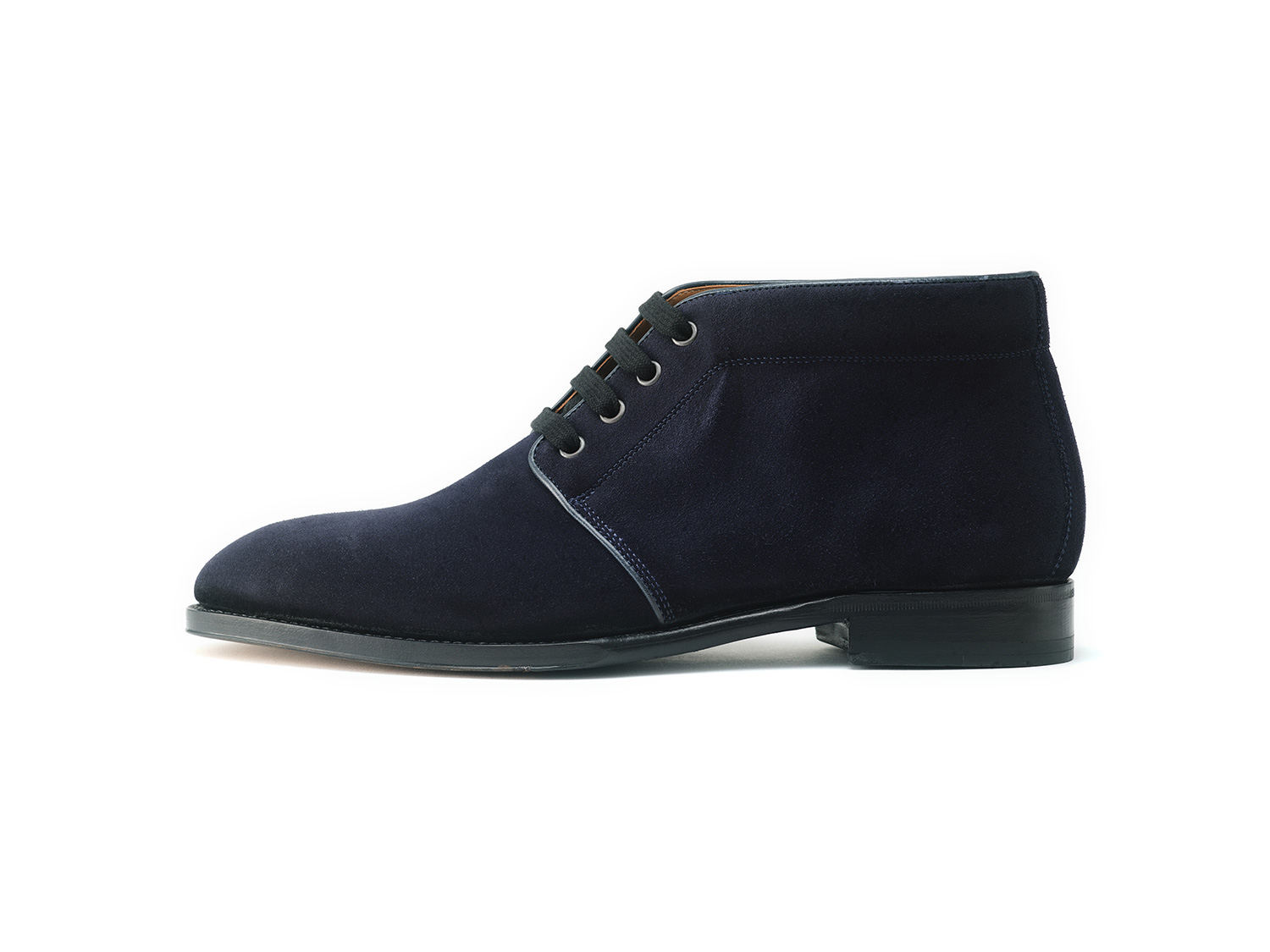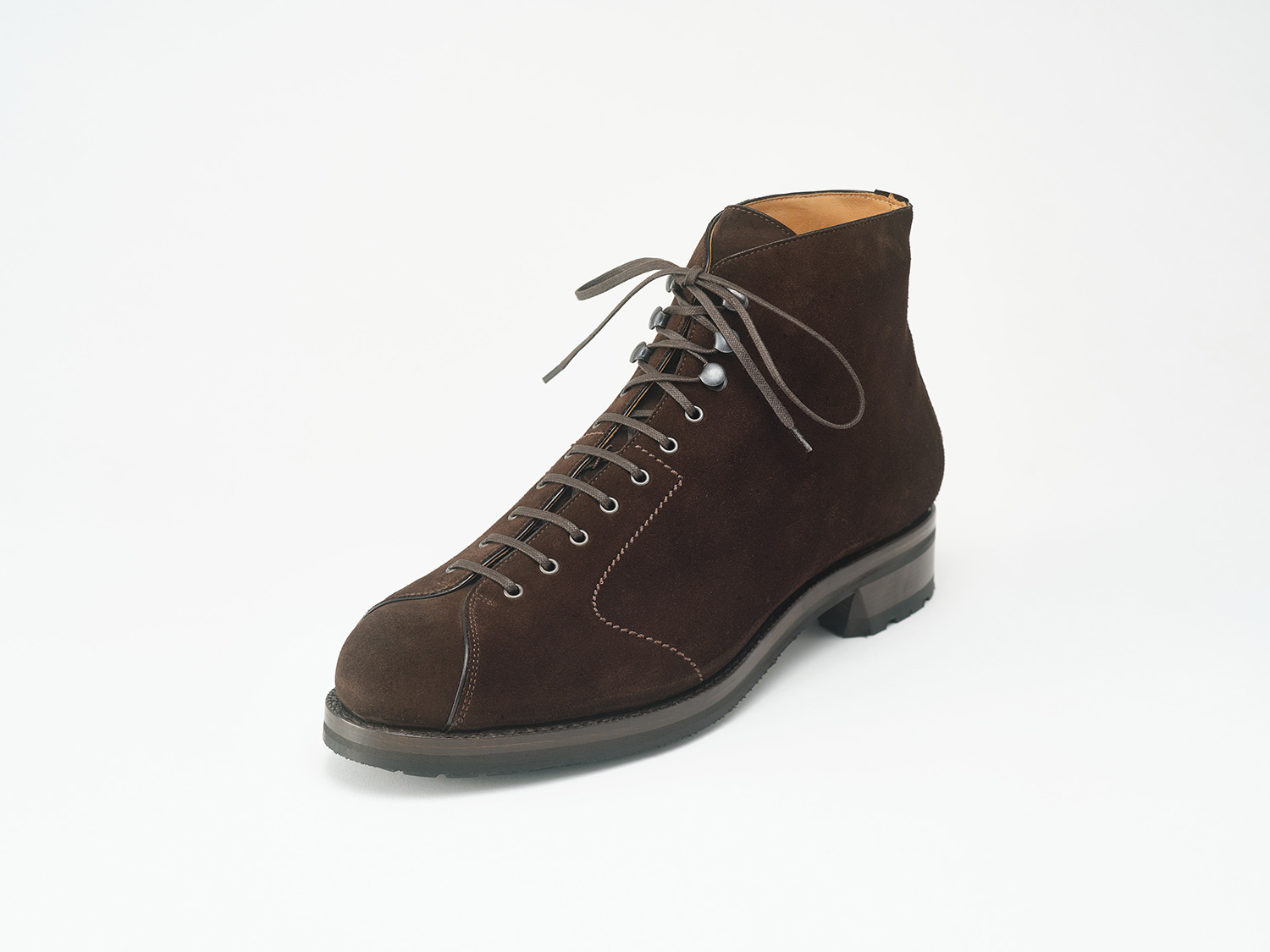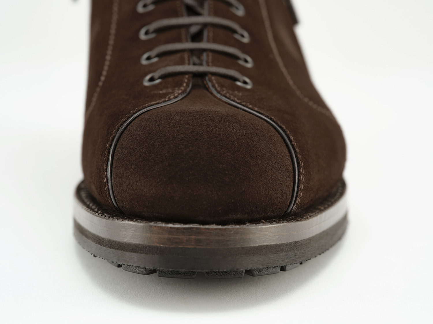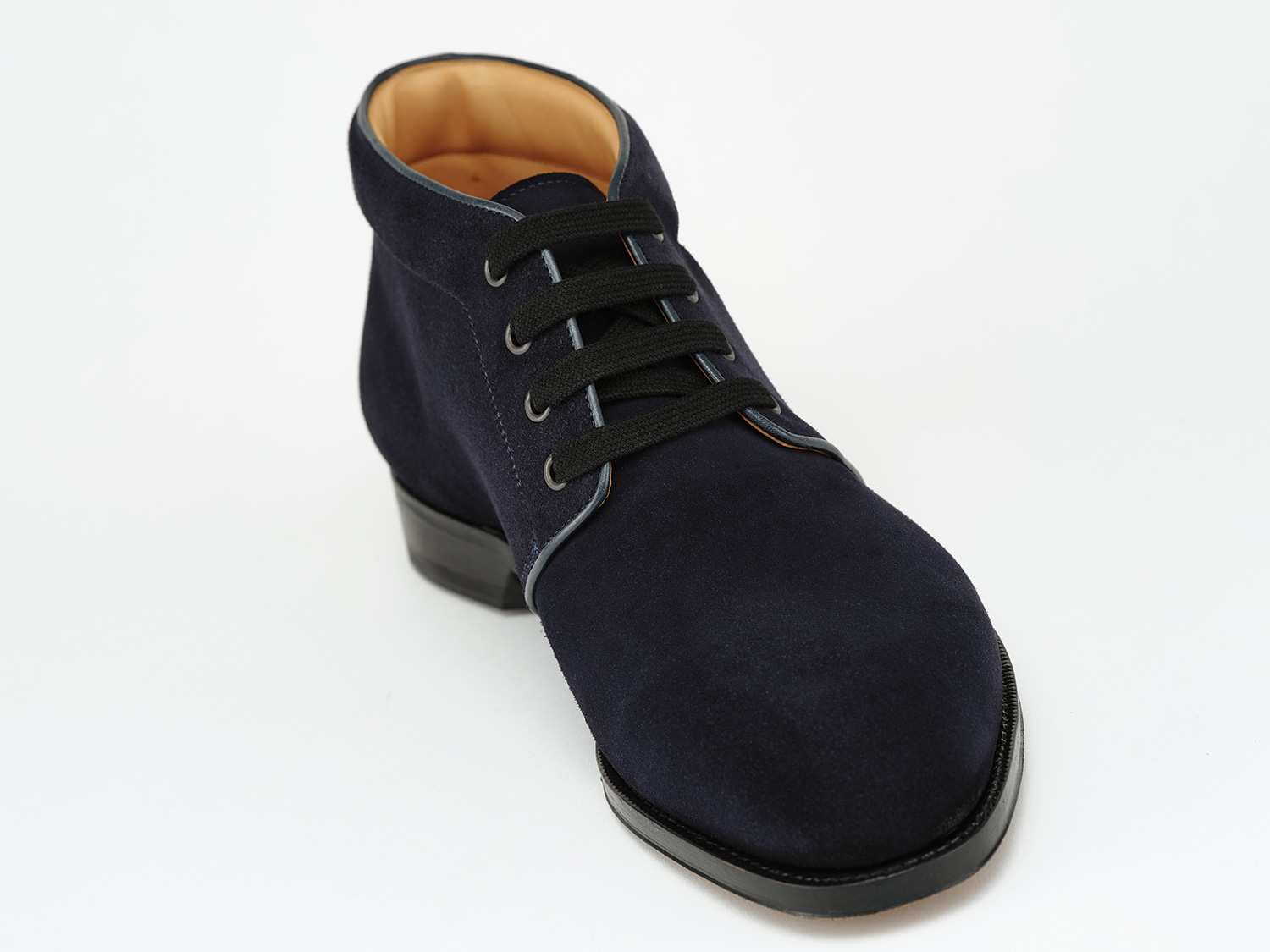 羽根の空きが狭いイタリア軍のブーツからイメージしたスタイル。毛足が短く揃ったスポーティなサーフェイスのSUPER BUCK/ Charles F Stead社(英)は牛スエードながらも発色が良く丈夫な革です。九分仕立て+VIBRAMソールとの組み合わせは現代のタウンユースに適した一足です。