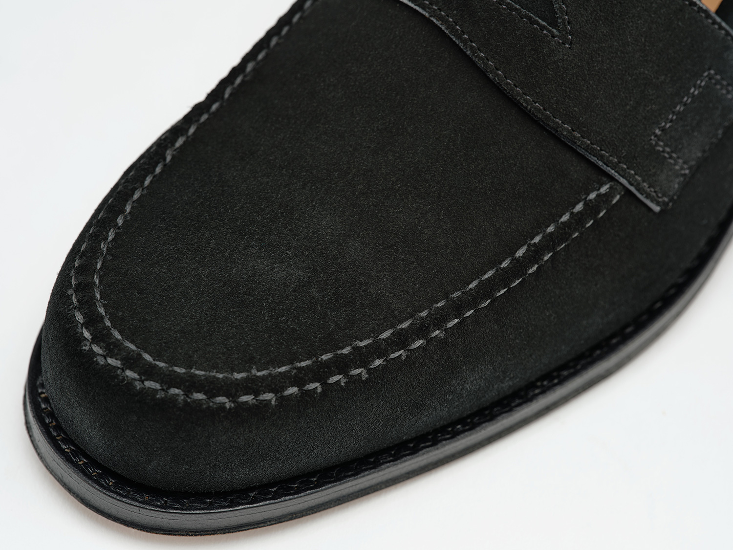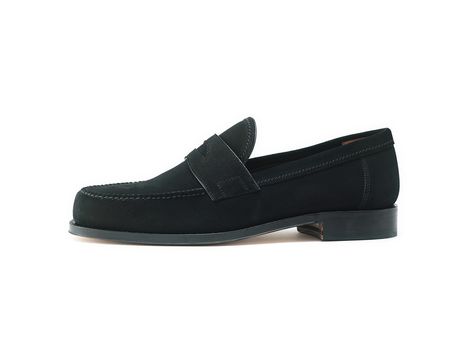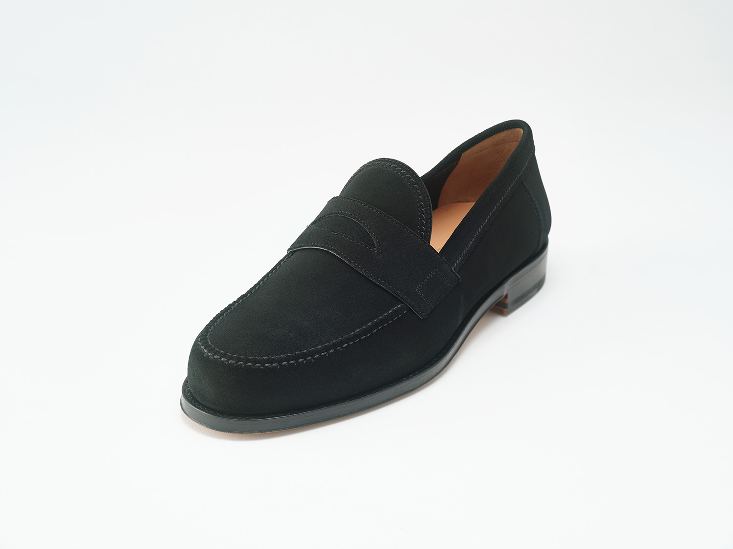 毛足の短く揃えたSUPER BUCK/Charles F Stead社(英)を用いた裏無しローファー。製甲/裏無し+底付け/九分の仕立てが適度な返りと屈曲の良さで春夏に向けたスタイルです。