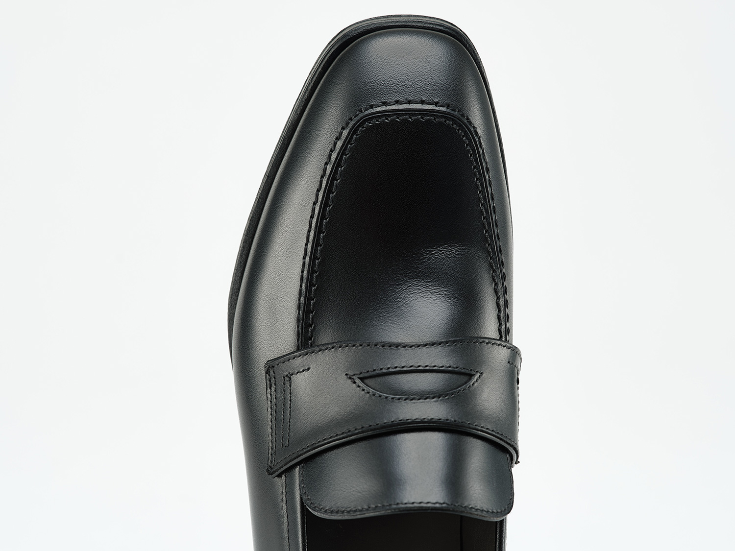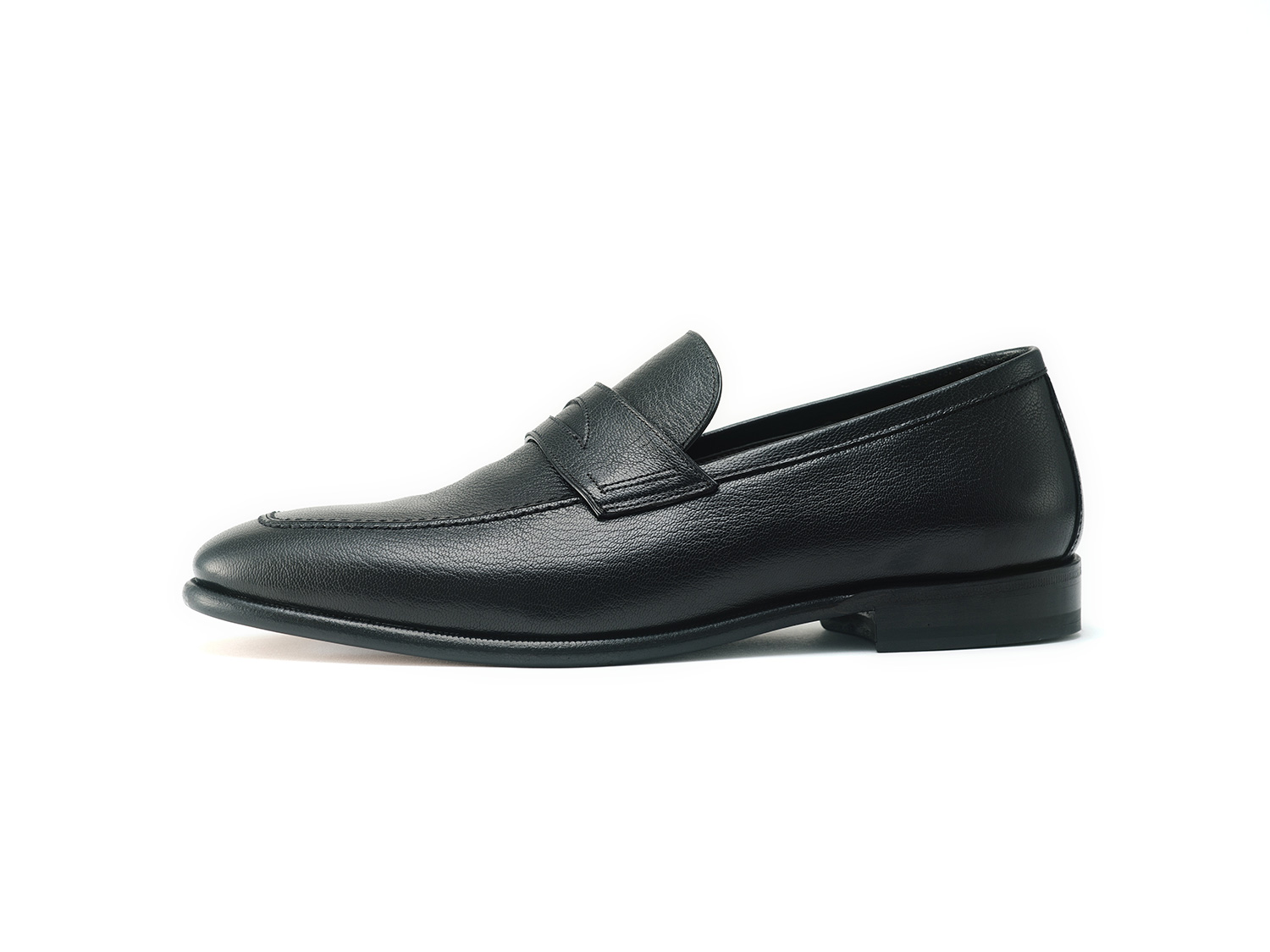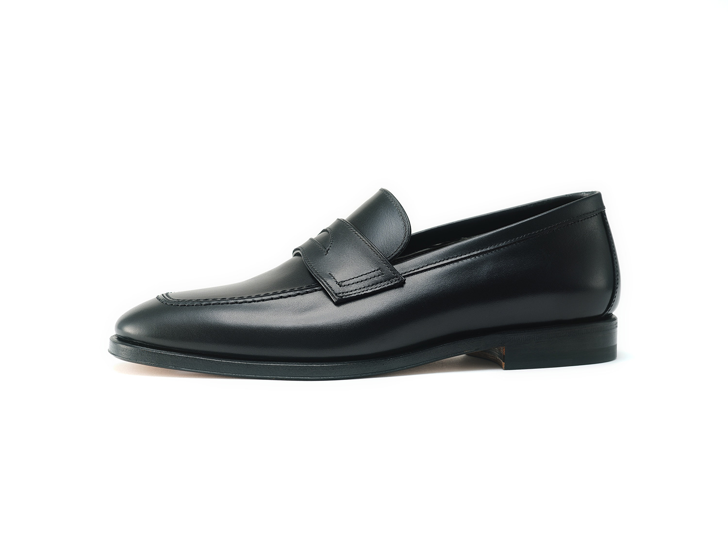 スクエアトゥのローファー木型FUXIA。高いトップラインがロングノーズに見せています。また、マッケイ製法でトゥを薄く仕上げています。