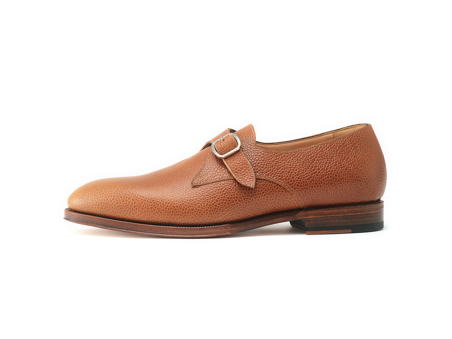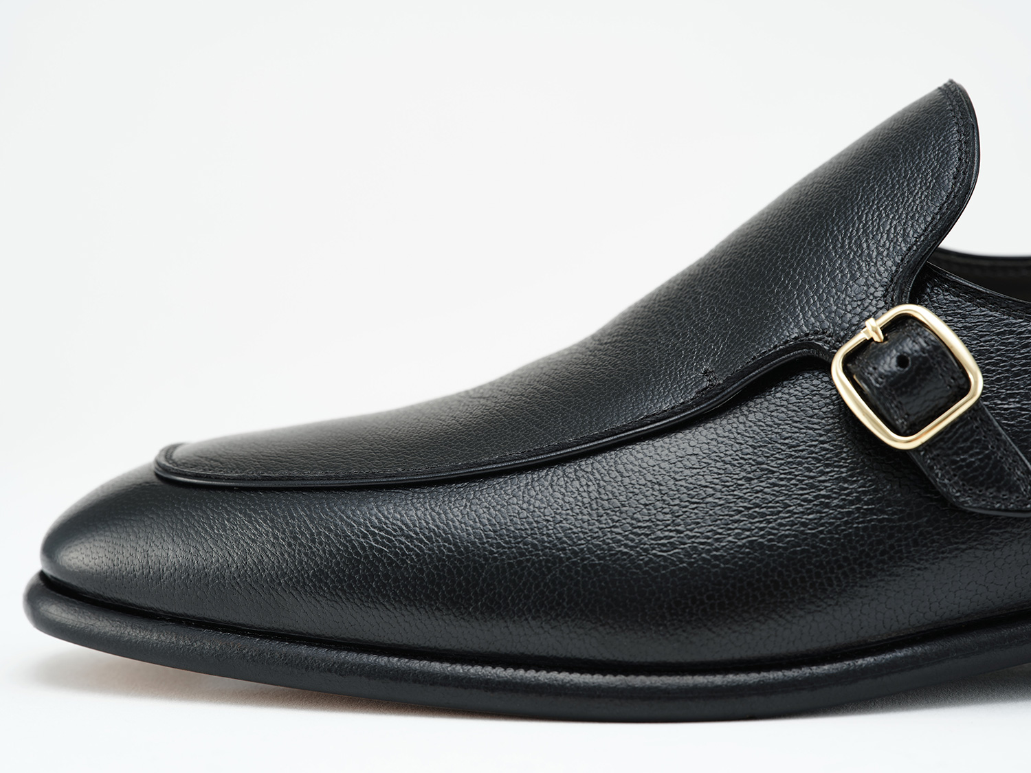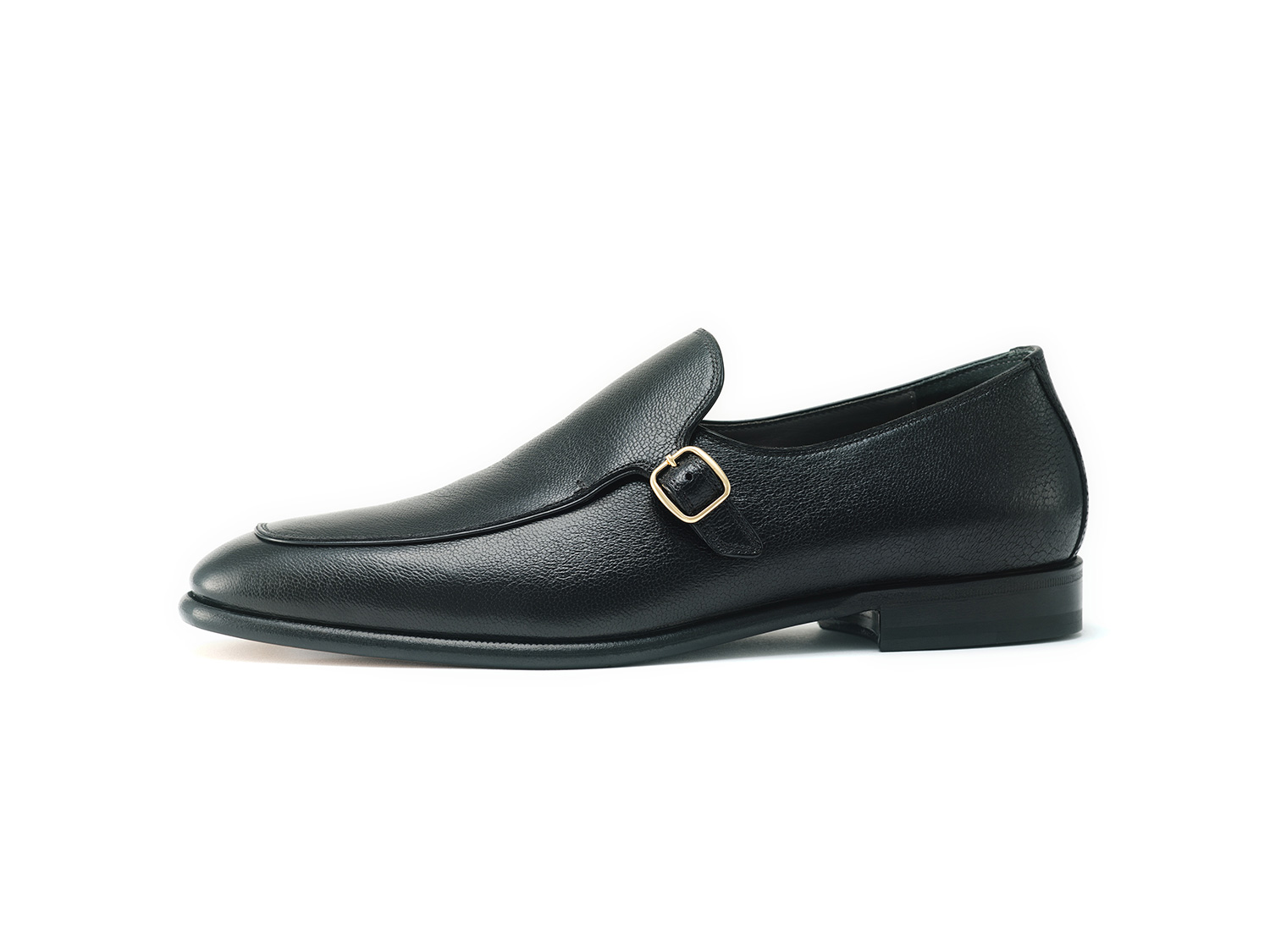 ローファー用木型ROSSAを用いたモンクストラップスリップオン。広い履き口とバックルで調整可能なシンプルなシングルモンクシューズスタイルのローファーです。
