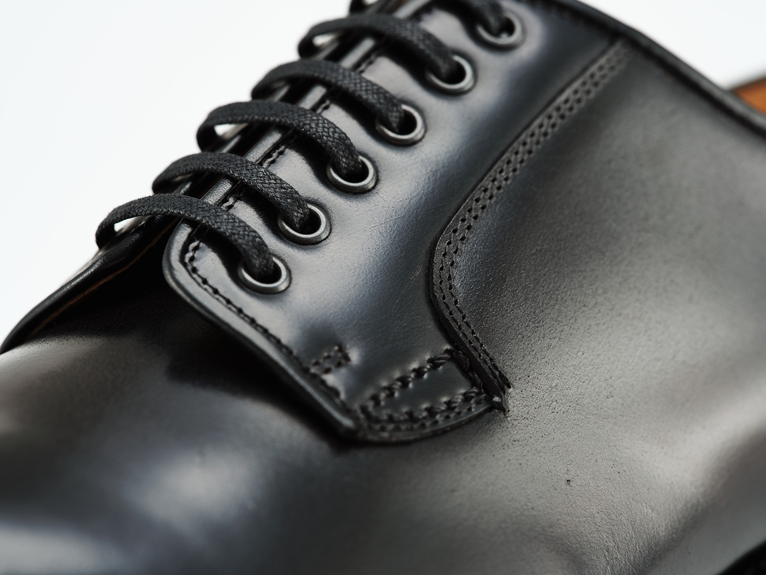 オブリークトゥのチャッカに4穴の大きなハトメと履き口のパッディングが70年代スケーターに支持されたスニーカーを彷彿されます。スポーティなニュアンスが増すことで革靴のスタイリングの可能性が広がります。