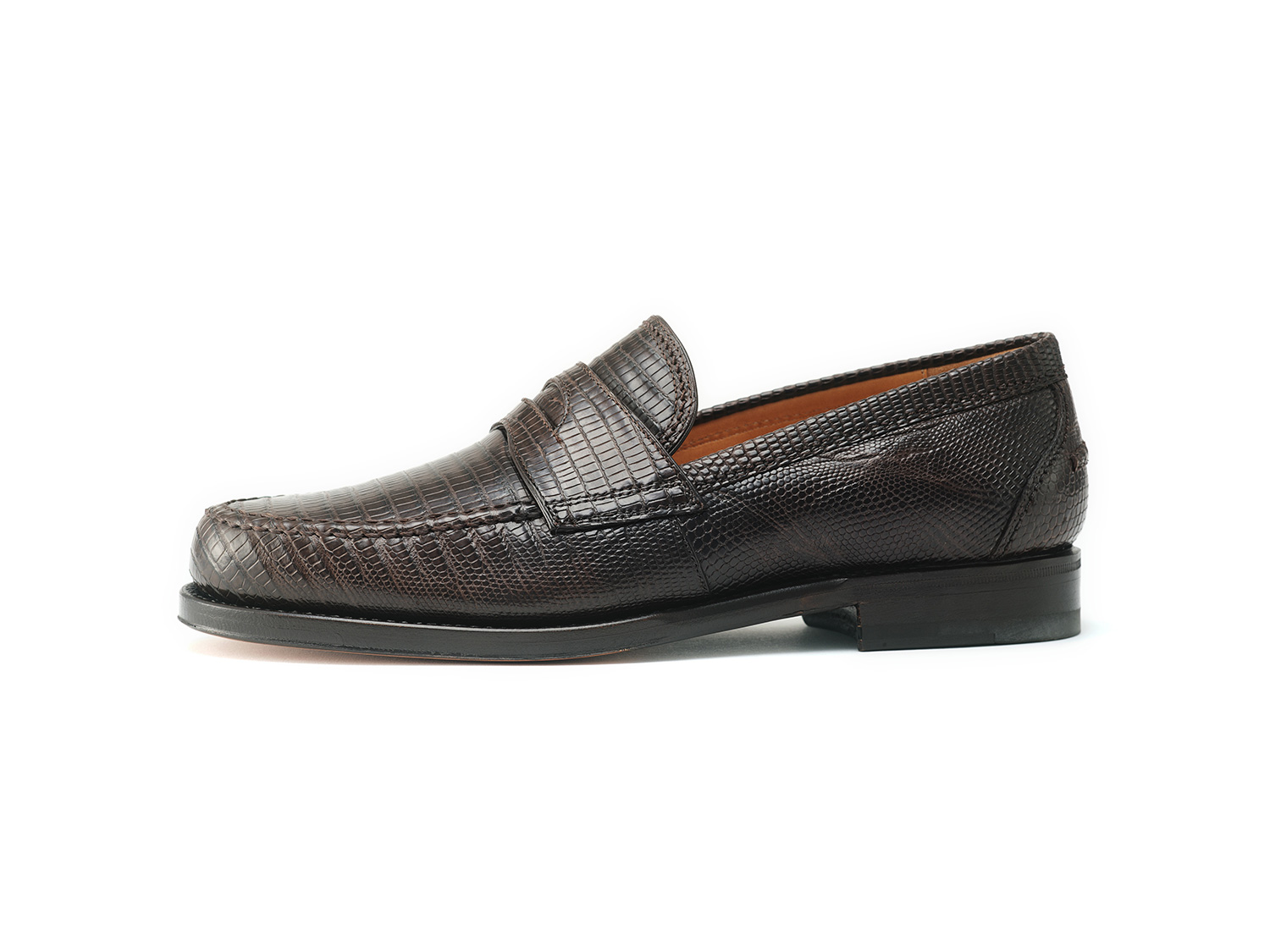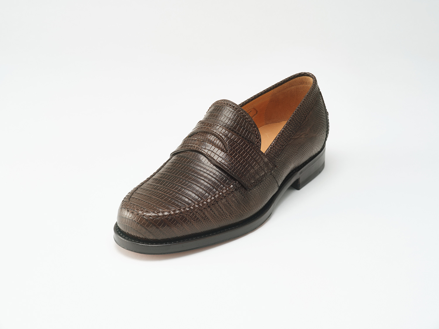 スクエアトゥ+ロングノーズのローファー木型FUXIA。高いトップラインがロングノーズに見せていますが捨て寸は短く、クラシックシューズの仕上がりです。